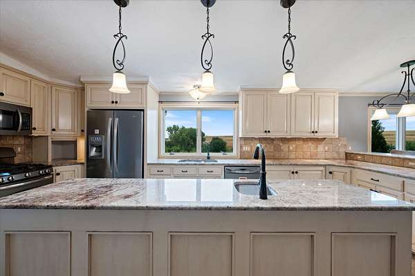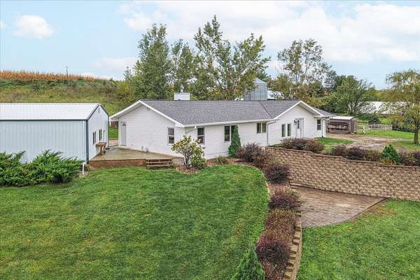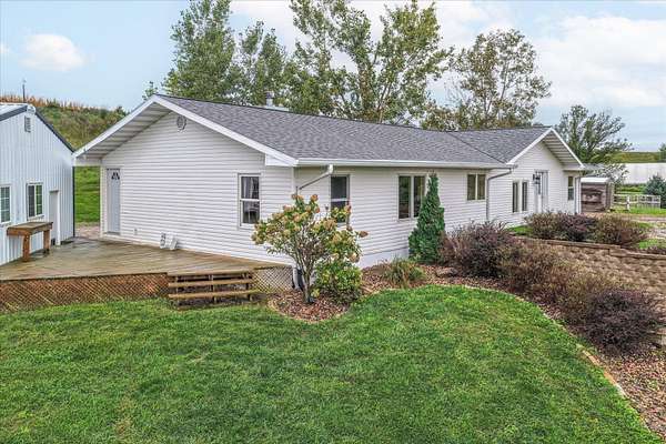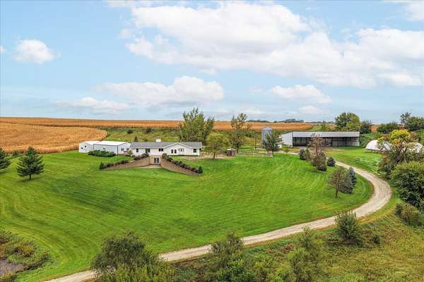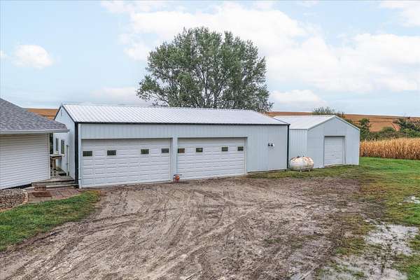 Own this 4 acre piece of paradise located northwest of Beebeetown. If country side views, a neighboring pond, a secluded setting down a long lane are what you dream of, this could be the one. This large updated ranch home has a finished walk-out basement. The main level has laundry, a full primary suite, plus an office & large 2nd bedroom as well as a large mudroom/drop zone, a huge living room & an updated kitchen with granite & stainless steel appliances. The walk-out basement features a huge family room w/fireplace, 2 more bedrooms with egress windows & a 3/4 bath. Outside find a 4 car + 2 car garages, 44x118 machine shed, 10x14 shed, a 32x72 hoop building & a steel feed bin. There is also a fenced pen for chickens or your garden patch. Under 30 miles to Omaha/Council Bluffs.