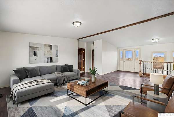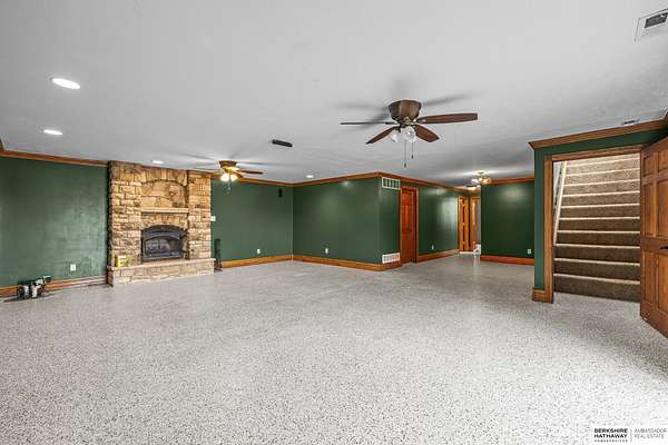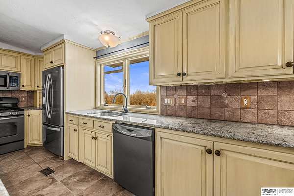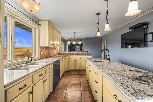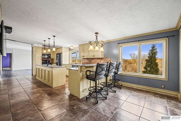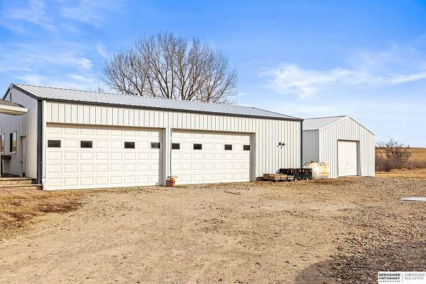 Sandy Beck, M: 402-210-3845, sandy.beck@bhhsamb.com, https://www.bhhsamb.com/sandy.beck - Rare opportunity to own a private 4-acre retreat loaded with space, function, and views. This impressive walkout ranch offers exceptional outbuildings including a 118x44 machine shed, 72x32 hoop building, steel feed bin, 14x10 shed, plus both a 4-car and 2-car garage--perfect for hobbyists, equipment, or extra storage. A fenced area is ready for your chickens, completing the ideal country setup. Enjoy peaceful outdoor living from the deck or stone patio overlooking a neighboring pond. Inside, the main floor features a gorgeous kitchen with granite countertops, island, stainless steel appliances, and under-cabinet lighting, along with a spacious laundry and mudroom, office, primary suite with full bath, oversized second bedroom, and an additional 3/4 bath. The walkout lower level adds even more living space with a family room featuring a wood-burning fireplace, two additional bedrooms, and another 3/4 b