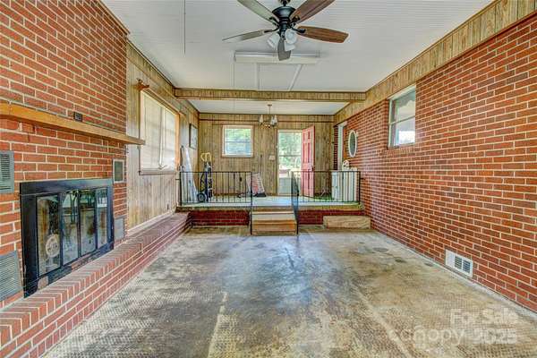 This brick ranch-style home is situated on over 5 acres in rural Cleveland County. It features an attached two-car garage and an enclosed family room with a fireplace. Additionally, a block building is located at the corner of New Prospect Church Road and Fallston Waco Road, which was previously used as a store. This building includes a half bath. The zoning for this property is residential.