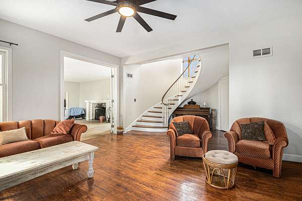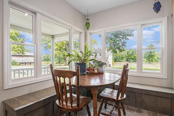 HUGE PRICE IMPROVEMENT! Sellers are motivated, all reasonable offers will be considered. Very unique and charming home in the heart of Edwardsburg Village! This spacious 4 bed, 2.5 bath property offers character at every turn. Inside you'll find an eat-in kitchen with center island and pantry, formal dining room, living and family rooms, office, a stunning spiral staircase, new water heater, plus 3 fireplaces and dual furnaces. The upstairs primary suite features a private bath, walk-in closet, and laundry. Situated on 3 acres, the property also includes 4 outbuildings and an inground pool (needs work or could be converted to a patio). With classic details and endless potential, this home is ready for someone to restore it to its original glory! Riding Lawnmower will stay with the home.