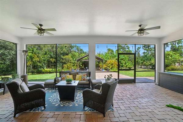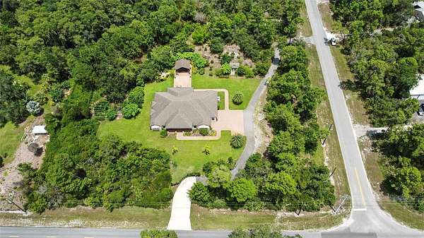 Under contract-accepting backup offers. Stunning Corner-Lot Estate on 2.15 Acres with Modern Amenities and Mature Fruit Trees. This home is a perfect blend of elegance, practicality, and thoughtful design. With no HOA and its proximity to the vibrant Lake Nona area, you can enjoy privacy while still having access to world-class amenities, dining, and entertainment. Discover this exceptional 3,150 Sqft residence perfectly situated on a 2.15-acre corner lot, surrounded by vibrant gardens and over 50 mature fruit trees, including mango, avocado, pineapple, bananas, acerola, lime, passion fruit, starfruit, and more. The property boasts a charming large front porch, perfect for enjoying the peaceful setting. Step inside this open-concept home, where natural light fills the living spaces, highlighting beautiful architectural details like the exposed beams in the living area. This home features 4 spacious bedrooms and 3.5 bathrooms, thoughtfully designed to provide both comfort and functionality. Two of the bedrooms have cozy window seats and share a convenient Jack and Jill bathroom. The master suite is a true sanctuary, featuring a walk-in closet that doubles as a safe room. This secure space is constructed with cement block walls and reinforced with a separate double roof for added protection. The heart of the home is the beautiful kitchen, complete with a large center island perfect for meal prep, casual dining, or entertaining guests. The kitchen also features modern appliances, ample counter space, and a spacious pantry to accommodate all your culinary needs. Adjacent to the kitchen is a dedicated office for remote work or study. One of the standout features of this property is the versatile game room or TV room, offering additional space for entertainment. Convenience is a priority with a big laundry room and a spacious 3-car garage. The outdoor areas are perfect for gatherings, featuring a large back porch, a 20 x 16 pavilion, and a cozy fire pit--ideal for relaxing with family and friends. The property offers two asphalt-paved entrances, making access easy and convenient to Zuni Rd and Oesterle Rd. With expansive grounds, there's plenty of space for pets, or even adding a pool if desired. This home is a perfect blend of elegance, practicality, and thoughtful design. Schedule your private tour today and experience the exceptional lifestyle this property provides!