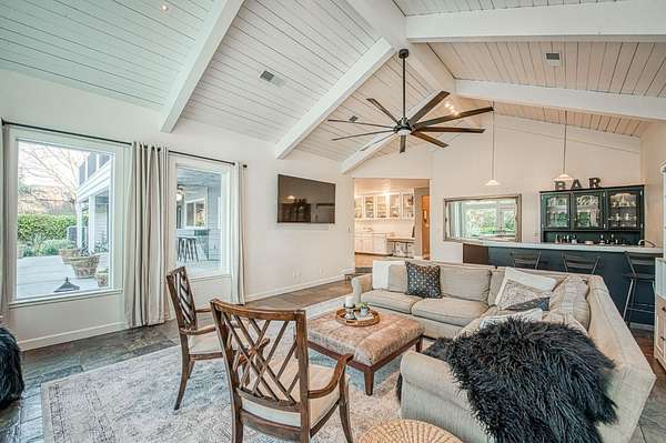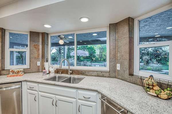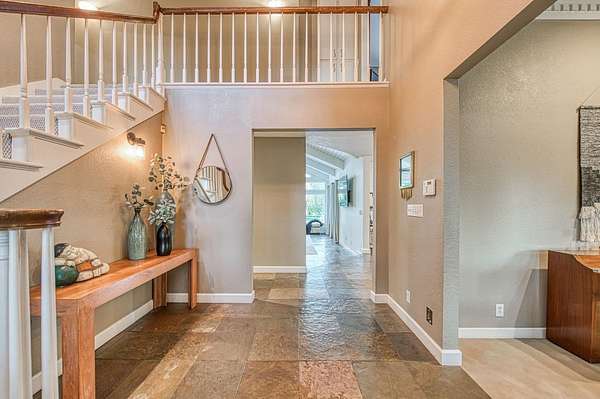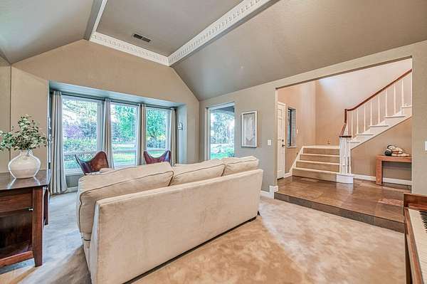 Welcome home to your very own slice of paradise! This truly amazing property checks off every single box on your wish list. The perfect family floor plan with the owner's suite on the main level complimented by either an adjoining office, TV area, gym or perfect babies' nursery. There are 2 additional bedrooms on the main level and 2 upstairs. Plenty of elbow room for the whole family to spread out across 3 distinct living spaces; formal living, family room and an upstairs bonus room with a huge balcony. Whether you are raising a large family or just love to host friends, this layout is absolutely ideal. Tucked away on a quiet cul de sac, the home exudes a peaceful country feel, yet you are minutes from conveniences like the grocery store, restaurants, the gym and school. Perhaps the most breathtaking feature is the park like setting situated on your own private lake! The ambiance is taken to the next level by the soothing sounds of a waterfall at the lake and a shelf spillway flowing from spa to pool. This special 2 acre estate is shaded by mature trees and lush grass areas, all surrounding a newly rebuilt pool and spa with beautiful updated hardscape. Ample room for parking, incredible storage, and a prime location within CUSD this home offers 5 dedicated bedrooms, and a 6th if needed. This is the one you have been waiting for! Bath count differs from tax records. Buyer to verify.