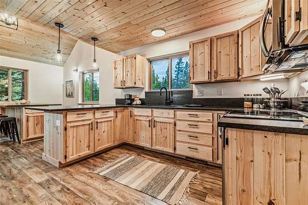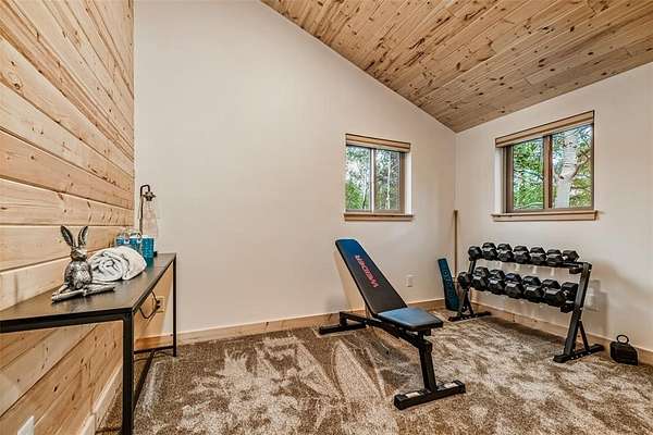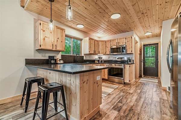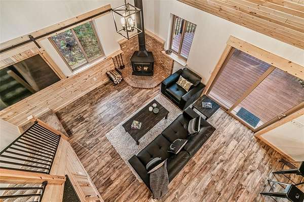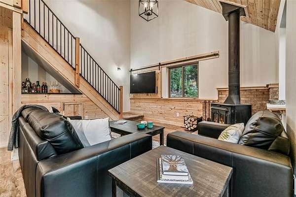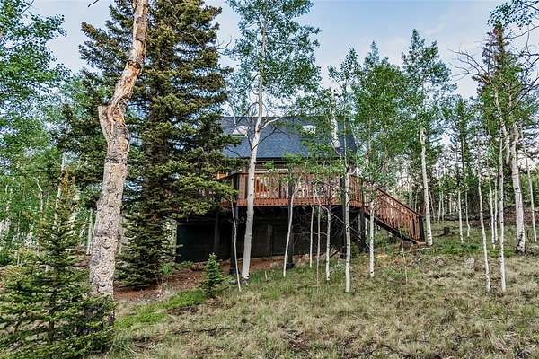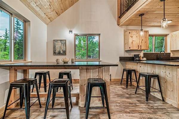 This mountain cabin has been completely, meticulously, and beautifully remodeled. From the first glimpse of the two level cabin, with a main level covered front entry and a charming balcony off the second level, you will fall in love. The great room, with so many unique features, will become your favorite space. The weathered looking wood floors add warmth, the wood burning stove with a roomy hearth for firewood, and t&g walls and ceilings give the space that cozy cabin ambiance. Windows all around let in the 300 days of Colorado sunshine. A sliding wall holds your television so you can tuck it out of the way. A bar with extra storage is nestled under the stairs. A built in dining table topped with luxurious leathered granite is perfect for any get together. The open kitchen has the same granite countertops, a pantry, high end finishes, custom cabinets, and extra seating. Or, step outside onto the back deck to enjoy your morning coffee and stunning views of mountains, rock outcroppings, and an abundance of mature Pine and Aspen. The main level is finished off with a bedroom, full bath, and a utility/laundry room. Upstairs are two additional bedrooms, a 3/4 bath, and the most charming loft space. The views are inspiring. The circular driveway surrounds an oversized, 3 car garage with a wood stove. This space is so versatile. The front space is large enough to be used as a garage plus a workshop. The rear space would be a perfect for a man cave, home gym, or entertaining. All this located in the Stagestop community which offers all the amenities that make Colorado so attractive. The Property backs up to BLM LAND. Stagestop residents have exclusive access over 17 miles of private fly fishing on the Tarryall River and three stocked ponds. Just about an hour to skiing in Breckenridge or rafting the Arkansas River, and only an hour and a half to both Denver and Colorado Springs, the cabin is the ideal vacation getaway, full time residence, or short term rental prospect.