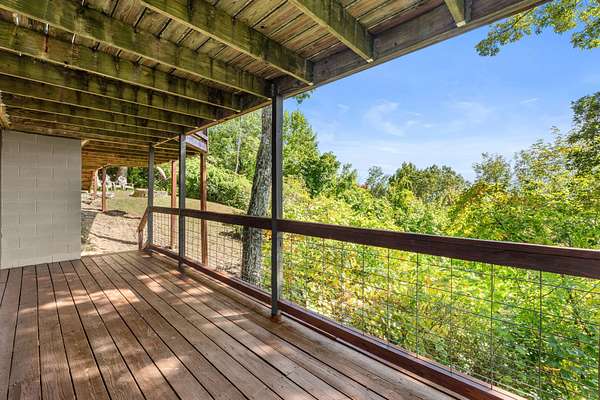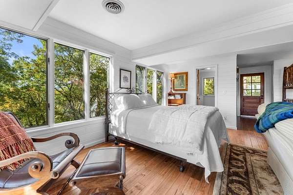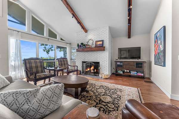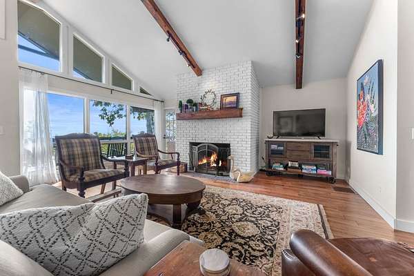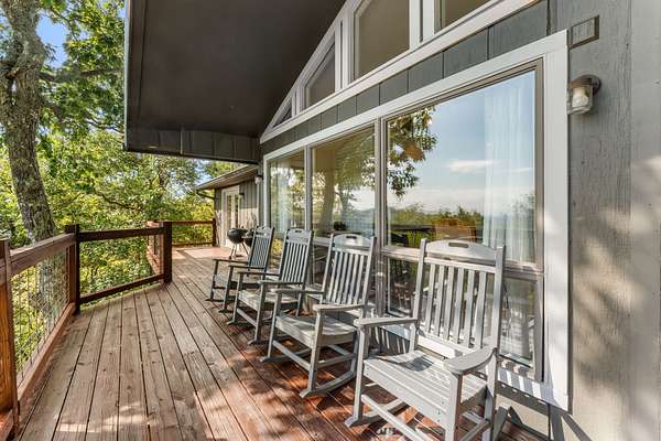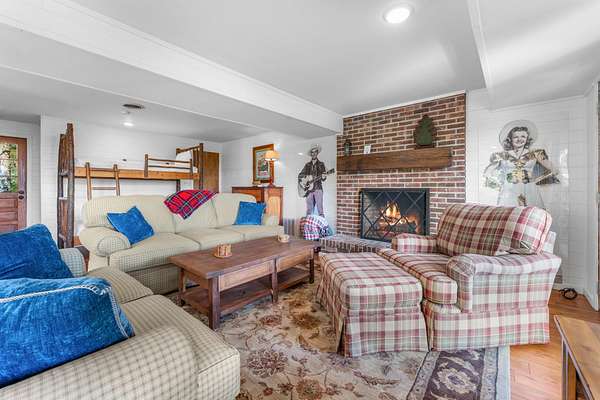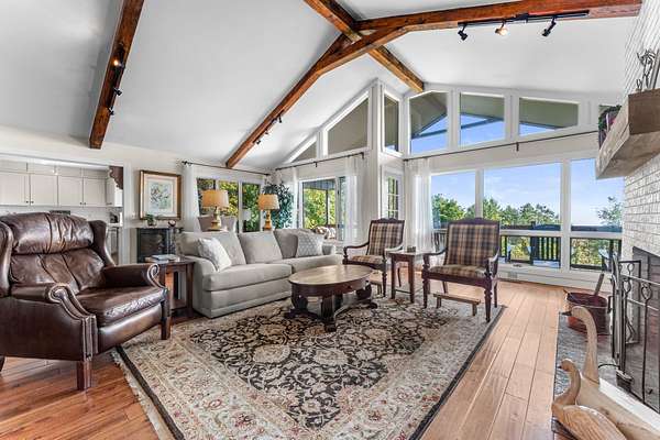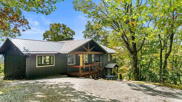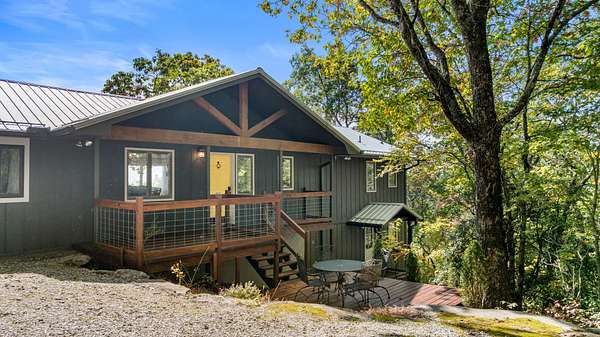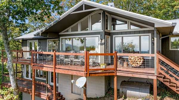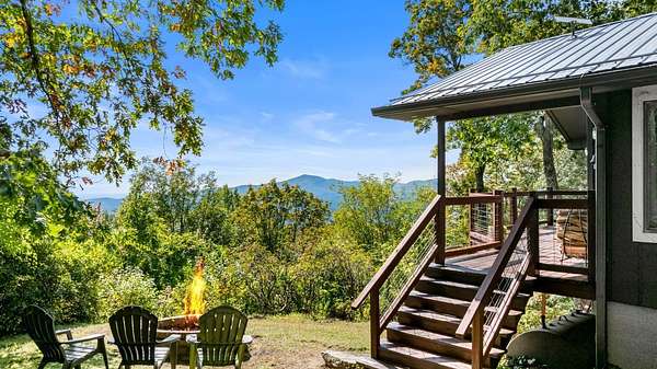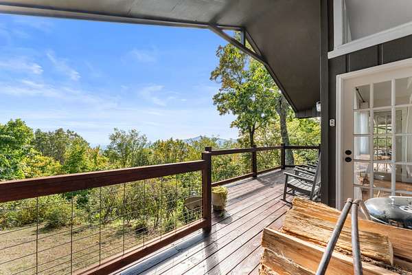 Just minutes from downtown Highlands, this renovated mountain home combines modern updates with classic mountain style. The great room features a wall of windows showcasing Blue Valley views and a brick wood-burning fireplace with an ash chute for easy clean-up. Main Level: Includes a primary suite and guest suite, both with king beds. The updated kitchen offers modern appliances, plenty of workspace, and natural light. The back deck provides mountain views, rocking chairs for relaxing, and a nearby fire pit for cool evenings. The great room also includes a sleeper sofa for additional guests. Lower Level: A versatile space with a queen bed, bunk beds, and another sleeper sofa, plus a sitting area and a second wood-burning fireplace-ideal for guests or extra living space. Outdoor Living: Enjoy long-range Blue Valley views from the covered porch or gather around the stone fire pit below for evenings under the stars. This well-maintained home is offered fully furnished with a few exclusions and includes thoughtful features like a lifetime, transferable mold remediation contract, a dehumidifier, and a recently inspected septic system in good order. Move-in ready and perfect as a primary residence, mountain getaway, or investment property.