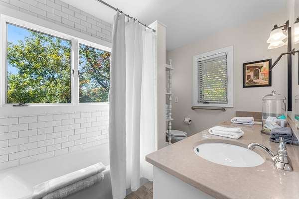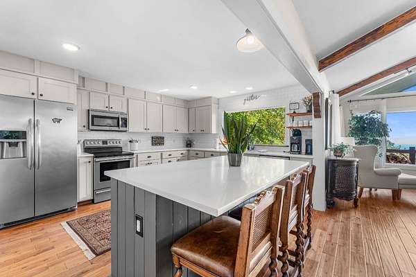- Kitchen Island, Open Floorplan, Track Lighting, Vaulted Ceilings