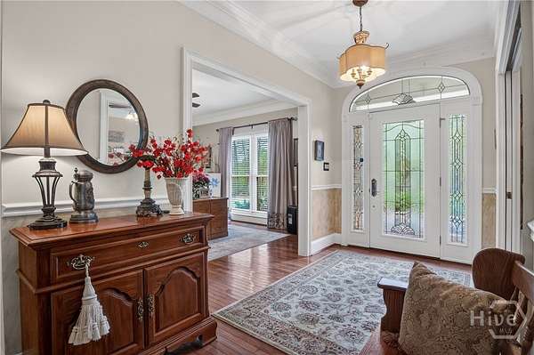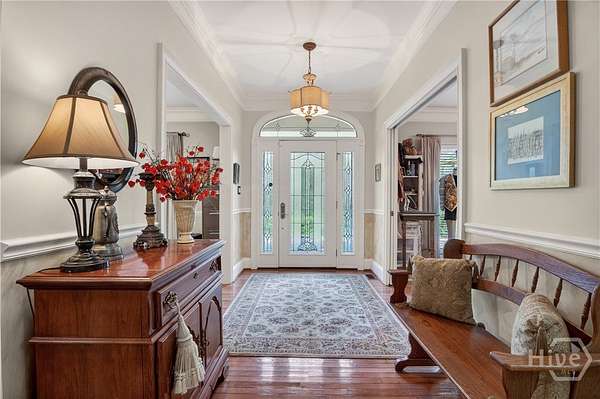 - Attic, Bathtub, Breakfast Area, Built-In Features, Ceiling Fan(s), Double Vanity, Entrance Foyer, Fireplace, Gourmet Kitchen, Main Level Primary, Pantry, Primary Suite, Separate Shower