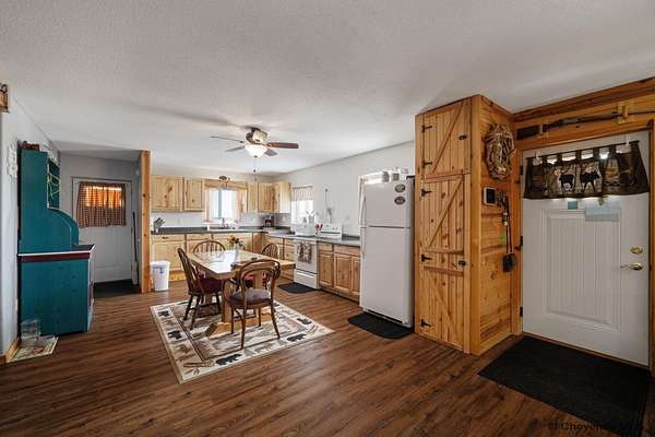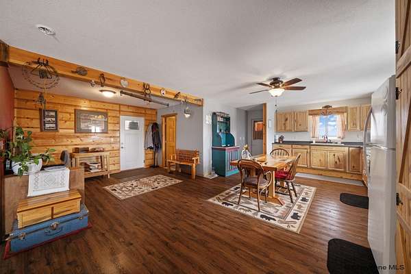 Est $2,944/moA barndominium blends the best of both worlds with rustic charm and modern comfort in one versatile, stylish package. But with durable steel frames and open concept the design and construction delivers an energy efficient home too. This 3168 sq foot Barndo is a 44' x 72' steel building. And encased within, is a 1296 sq ft residence. The home is an open concept, with features like zero entry (no steps), great room, primary en-suite, den, dining, kitchen, laundry and second bath. The shop is 1872 sq ft, fully insulated with power, pellet stove, a 13' shop door to accommodate RV storage and additionally, a 10' garage door.