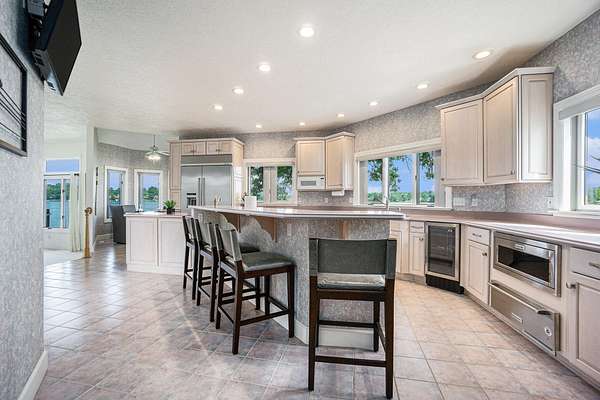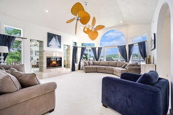 Amazing opportunity to own an island! This stately property features 2 homes (1 on main land, 1 on the island) & offers amazing lake life. Located on Goguac Lake, the home is close to the highway, golf, schools, restaurants, shopping, parks, & more. Take a boat to the island home where you are greeted with 2 acres of stunning landscaping & 17 different relaxing spots to enjoy lake views. The home is stately & offers lake views from every window. The main floor features a huge living room with soaring ceilings, a dining room perfect for dinner parties, & a huge chef's kitchen with built-in appliances & a massive center island. There is a bedroom suite along with an additional space bedroom, huge laundry room, & half bathroom. Upstairs is the stunning primary suite with sitting area, massive bathroom, & huge closet. The lower level features the family room, bar, gym/game room, hot tub room, bedroom with attached bathroom & secret closet, along with a full bathroom. Outside are multiple decks, patios, docks, & so much more. The main land home features 2 bedrooms, a large full bathroom with laundry, & an open living space with living, eating area, & kitchen with snack bar. The home features plenty of lake views along with 2 different garages (1 for cars, the other for storing all the water toys including lifts). There is a personal boat ramp & a large dock along with beautiful landscaping. This is a lake lifestyle that you have to see to believe!