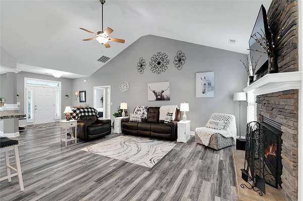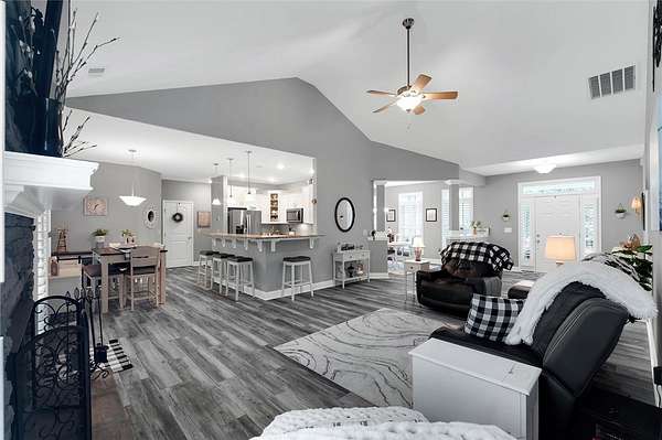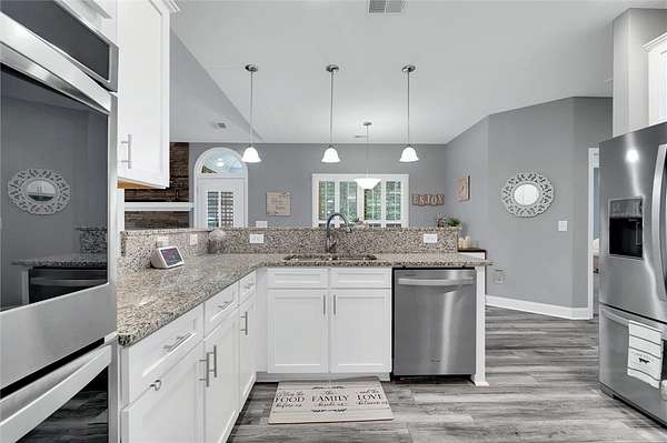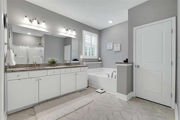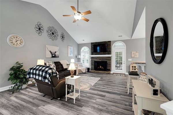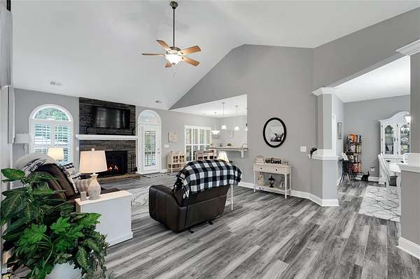 - Bath In Primary Bedroom, Cable Tv, Cathedral Ceilings, Ceiling Fans, Dual Sinks, Fireplace, Garden Tub Roman Tub, Granite Counters, High Ceilings, Main Level Primary, Pull Down Attic Stairs, Separate Shower, Sitting Area In Primary, Smooth Ceilings, Walk In Closets