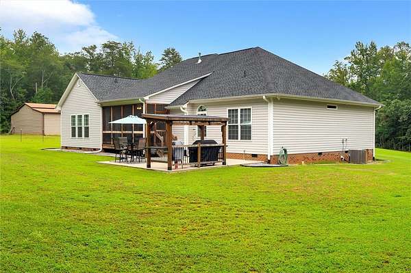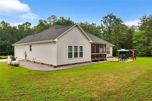 This 4-year young, beautiful Craftsman style home with 3 bedrooms and 2 full baths is located on a 6.45-acre lot with a level and gently sloping lot that includes a pasture, mature hardwoods, and multiple building sites. There is a solar powered gate to access the property. Close to Simpsonville and downtown Greenville yet private and tucked away. There is a 2-car attached garage with urethane floor. Available storage for an RV and a boat with a large metal barn with concrete slab with 100-amp power service including 50-amp RV connection and rough in for potable water supply. The concrete patio is 20x20 with a grill gazebo. The interior features a total of 2954-square feet of living space with 2157 of heated square footage and an open floor plan. Custom plantation shutters throughout, soft close cabinet doors and drawers, and matching granite counter and vanity tops. The primary bedroom serves as your own private retreat with a sitting room, full bath, and French doors that open to a screened porch. These are just some of the awesome features this home offers. More detail in the feature section of this listing and in associated documents. Your newly built dream home with loads of features awaits you! Schedule your private showing today!