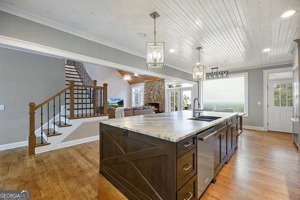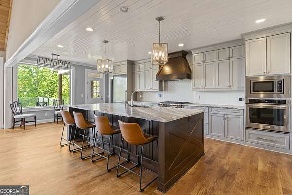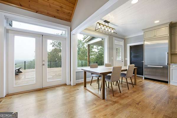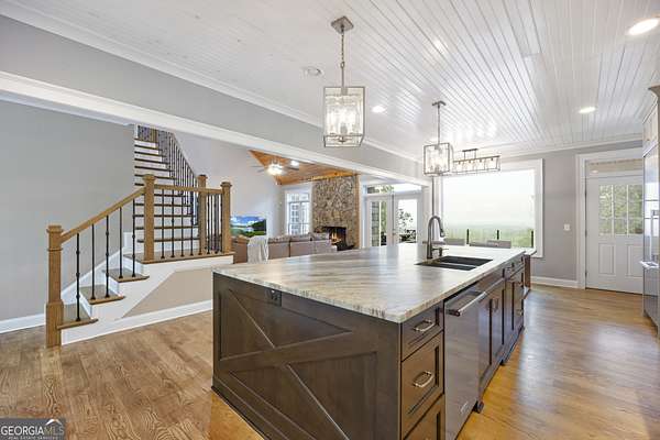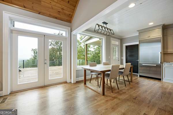 Perched at the top of the mountain, this gated retreat offers uninterrupted, postcard-perfect views of Yonah Mountain from nearly every room. Sitting on 6 acres with no neighbors beyond your property line, it delivers rare seclusion and serenity-yet you're only minutes from Cleveland and a short drive to Gainesville or the Hall County line. This home is also approved for Short-Term Rental (Airbnb/VRBO), giving you the opportunity to enjoy it as a private luxury escape or a high-performing investment property. Inside, soaring vaulted wood ceilings, white oak hardwood floors, and a dramatic stone fireplace set the tone. The chef's kitchen features a Wolf gas range, Miele refrigerator, granite countertops, and oversized picture windows that frame the sweeping mountain views. The primary suite is its own sanctuary, with a spa-style bath and those same breathtaking vistas. Step outside to a massive 1,200 sq. ft. deck-ideal for sunrise coffee, evening gatherings, or guests eager to experience the mountains in style. With a two-car garage, wraparound porch, and gated entry, this property blends five-star comfort, privacy, and convenience. If you've been searching for the ultimate mountaintop getaway-or a proven STR opportunity-this is the one.