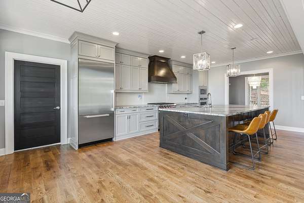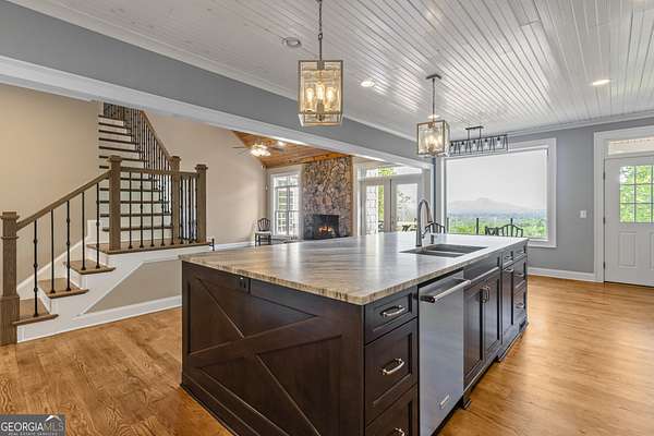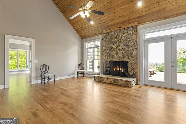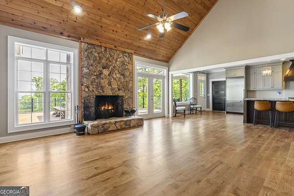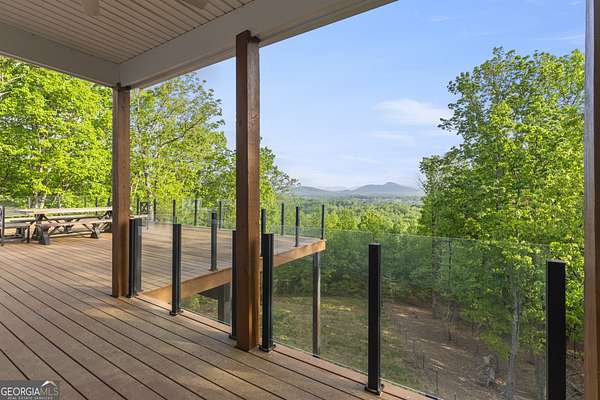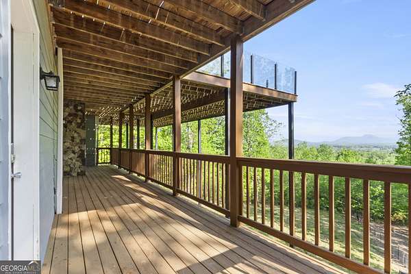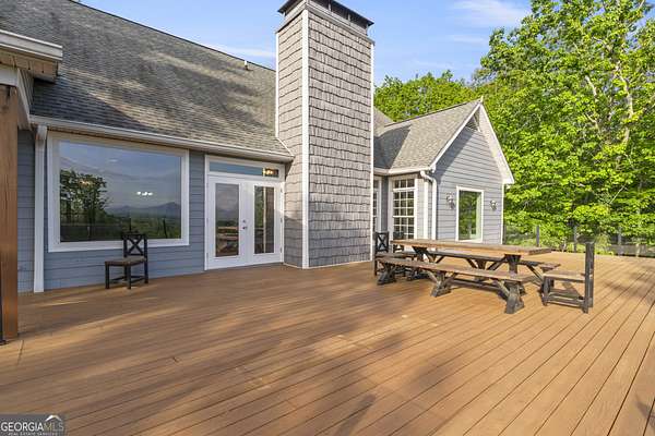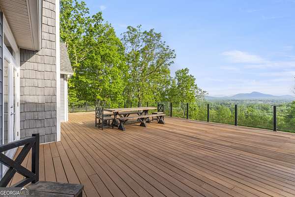 Perched at the top of the mountain, this gated retreat offers uninterrupted, postcard-perfect views of Yonah Mountain from nearly every room. Sitting on 6 acres with no neighbors beyond your property line, it delivers rare seclusion and serenity-yet you're only minutes from Cleveland and a short drive to Gainesville or the Hall County line. This home is also approved for Short-Term Rental (Airbnb/VRBO), giving you the opportunity to enjoy it as a private luxury escape or a high-performing investment property. Inside, soaring vaulted wood ceilings, white oak hardwood floors, and a dramatic stone fireplace set the tone. The chef's kitchen features a Wolf gas range, Miele refrigerator, granite countertops, and oversized picture windows that frame the sweeping mountain views. The primary suite is its own sanctuary, with a spa-style bath and those same breathtaking vistas. Step outside to a massive 1,200 sq. ft. deck-ideal for sunrise coffee, evening gatherings, or guests eager to experience the mountains in style. With a two-car garage, wraparound porch, and gated entry, this property blends five-star comfort, privacy, and convenience. If you've been searching for the ultimate mountaintop getaway-or a proven STR opportunity-this is the one.