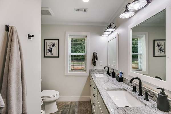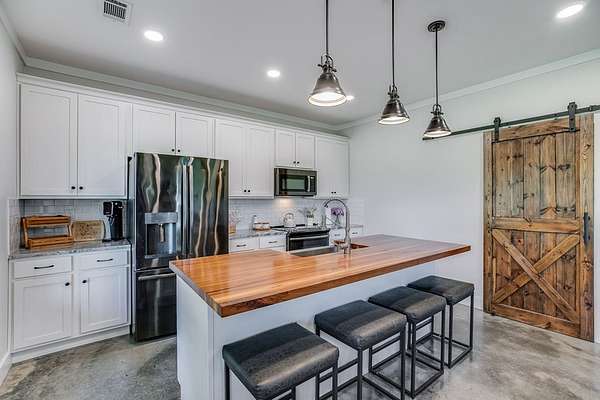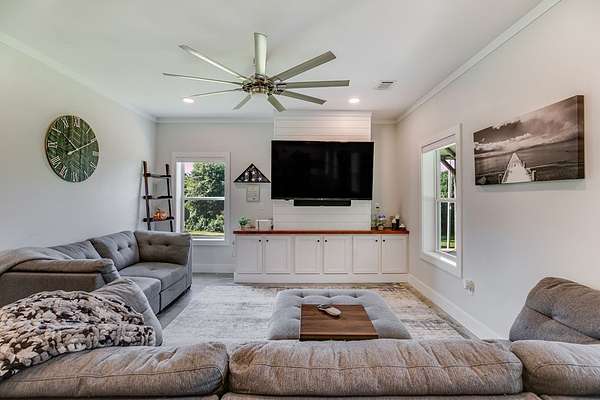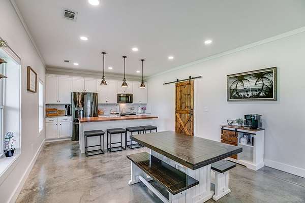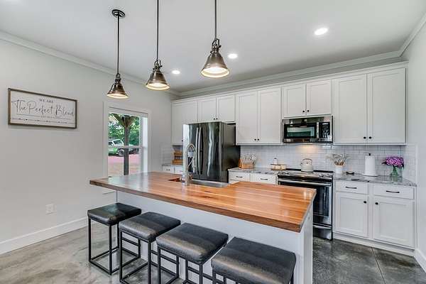 Experience the perfect blend of modern luxury and rural tranquility in this custom built 2019 ranch, situated on a sprawling 3.84-acre mostly level lot. Ideally located just off Hwy 27, this rare find offers easy access to West Georgia University and Carrollton's premier shopping while maintaining a serene atmosphere all within a 100% USDA financing eligible area for a potential $0 down payment. This home is a dream for hobbyists and travelers alike, featuring an oversized 40-foot deep garage with an 11-foot door, full wiring for a generator, dedicated RV hookups, an attached double carport, and a massive garage loft. Efficiency meets durability throughout the structure, which features low-maintenance metal siding, fire-resistant construction, and full spray foam insulation for remarkably low utility costs. These high-end upgrades are further complemented by a tankless water heater and a comprehensive water filtration system. The interior boasts an expansive open-concept design that seamlessly connects the family room, dining area, and a gourmet kitchen. At the heart of the home, the massive kitchen island serves as a stunning centerpiece with custom Lamon Luther butcher block countertops, complemented by a deep farmhouse sink and premium black stainless-steel appliances, including the refrigerator! The living area is move-in ready with sleek built-in cabinetry, while the thoughtful floor plan includes four spacious bedrooms with walk-in closets and a versatile flex room. Both the master and secondary bathrooms are beautifully appointed with double vanity sinks. Located in the highly sought-after Roopville Elementary and Central Middle/High School districts, this property offers a unique opportunity for high-quality living with ample space to add a pool or playground. (Disclosure: Floor plan may not be exact; all information is deemed reliable but should be independently verified by Buyer).