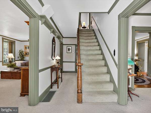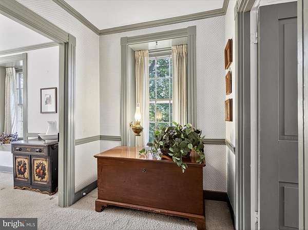 This exceptional 1827 limestone farmhouse is a rare opportunity to own a beautifully preserved estate set on 72 acres in the heart of historic Carlisle, Pennsylvania. Rich architectural heritage with thoughtful modern updates, this one of a kind property offers an unparalleled lifestyle just two hours from Washington, D.C. Tucked away in the breathtaking countryside yet only minutes from the U.S. Army War College, Carlisle Barracks, Dickinson College, and major highways, the estate offers the perfect balance of seclusion and convenience. A private driveway leads to the main residence, where original 19th-century details have been carefully maintained, offering an authentic glimpse into pre-Civil War era craftsmanship. The main home spans three finished levels and features four bedrooms, four full bathrooms, and one-half bathroom. A welcoming foyer with crown molding and chair rail opens into a front sitting room that sets the tone for the home's graceful character. The main living room features a cozy fireplace, while a charming side sitting room adds warmth with a fireplace and original wide-plank chestnut floors, ideal for quiet evenings or fireside reading. The formal dining room is a standout, boasting chestnut wood flooring, detailed wainscoting, recessed lighting, and another woodburning fireplace. French wallpaper brings a refined European flair, while a built-in china closet pantry offers both beauty and practicality for entertaining. Upstairs, the primary suite includes a large bedroom with elegant trim, and an ensuite bathroom with a jetted tub, vaulted ceiling, skylights, and vinyl flooring. Two additional bedrooms on this floor share a full bath, while the third level serves as a private retreat with chestnut flooring, vaulted ceilings, a cedar closet, and another full bathroom with a stall shower. The finished lower level offers fantastic versatility with a media room, gas fireplace, recessed lighting, a full bathroom, and a dedicated laundry room, ideal for entertaining. Beyond the main residence, the property includes a delightful carriage house with a two -car garage and additional living space. Inside, you'll find a kitchenette with brick floors, a mini fridge, and a bright great room featuring chestnut plank flooring, French doors, built-ins, and expansive windows. A full bathroom with brick floors accents, stall shower, and spiral staircase leads to an upper-level loft with vaulted ceilings and old wood flooring, perfect as a studio, office, or guest quarters. Outdoor living is just as impressive. Enjoy summer days by the 8-foot-deep inground pool, surrounded by a generous deck and a screened-in pavilion that's perfect for sipping coffee on quiet mornings or relaxing under the stars. The estate also features open fields, mature trees, a horse pasture, and an all-house generator for year-round peace of mind. Combining historic elegance, modern livability, and pastoral views, this remarkable Carlisle property is more than just a home, it's a legacy. Whether you're seeking a full-time residence or a serene weekend retreat, this rare offering delivers privacy, beauty, and enduring value in one of Pennsylvania's most picturesque settings. Schedule your private tour today.