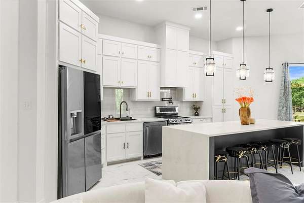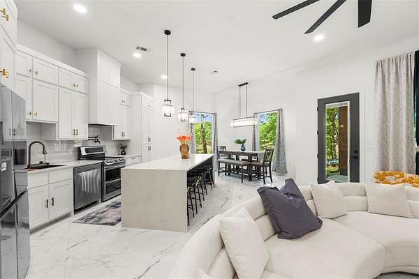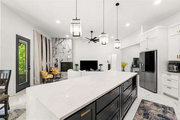 - Decorative Lighting, Double Vanity, Kitchen Island, Open Floorplan, Walk-In Closet(s)