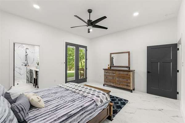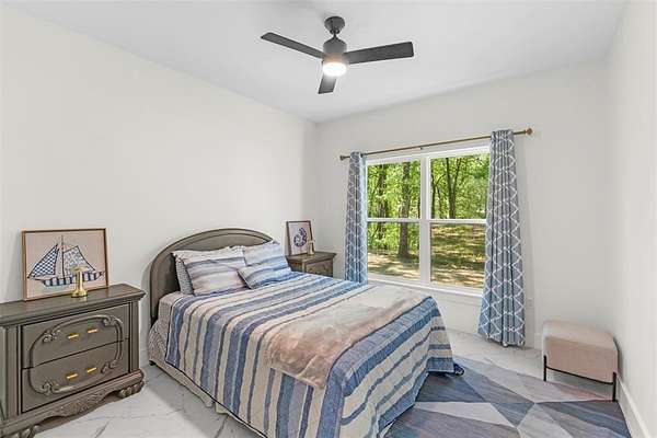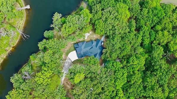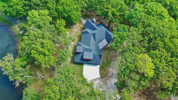Built in 2023, this inviting property offers the perfect lake retreat or full time residence at Richland Chambers Lake. Tucked at the end of a canal with water access and situated along the bank of a shared pond known for great fishing, the home provides a peaceful setting surrounded by mature trees and privacy. The open floor plan features three bedrooms, two bathrooms, and an upstairs bonus room for additional living or guest space. A hidden room behind a bookshelf adds a fun and versatile feature that can serve as an office, hobby room, or extra storage. The primary bedroom includes a private patio, while the main living area opens to a spacious outdoor patio with a fireplace, perfect for relaxing or entertaining.