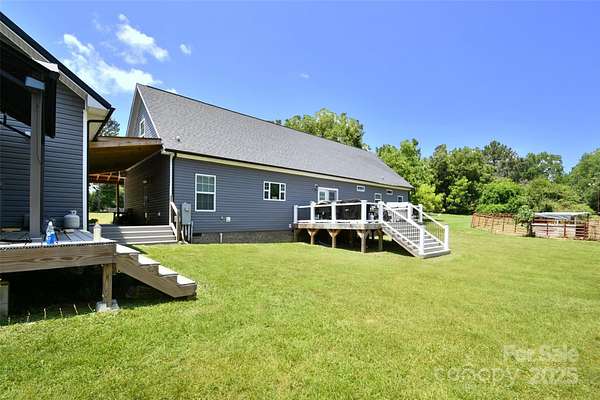 Here's your dream farmhouse retreat on nearly 6 acres, perfect for animal lovers, hobby farmers, or anyone seeking peaceful country living with modern comfort. Built in 2022, this custom farmhouse features 9-ft ceilings, an open floor plan filled with natural light, laminate flooring, and a spacious kitchen ideal for entertaining with a large island, farmhouse sink, and double oven. The family room includes a gas fireplace, crown molding, and built-ins. The main-level primary suite offers a custom closet, dressing room, and spa-like bath, with two additional bedrooms and a full bath on the main floor for added convenience. Upstairs includes two more bedrooms, a full bath, and a large bonus room. Relax on the massive Trex wraparound porch or spacious back deck overlooking fenced pastures. The 24x40 barn/workshop with HVAC, tack room, and kitchen is horse- or hobby-ready, with run-ins, auto-waterers, a hay barn, and an equipment shed. Oversized 3-car garage with loft storage. This property offers privacy, space, and versatility all just minutes from High Rock Lake, Salisbury, and an easy drive to Charlotte & Greensboro. Don't miss this rare opportunity to live the land-and-luxury lifestyle!