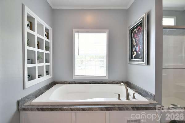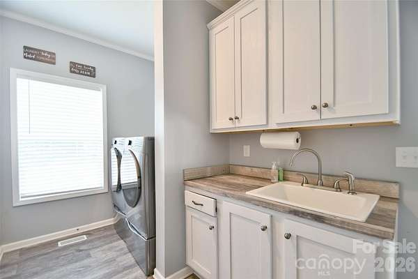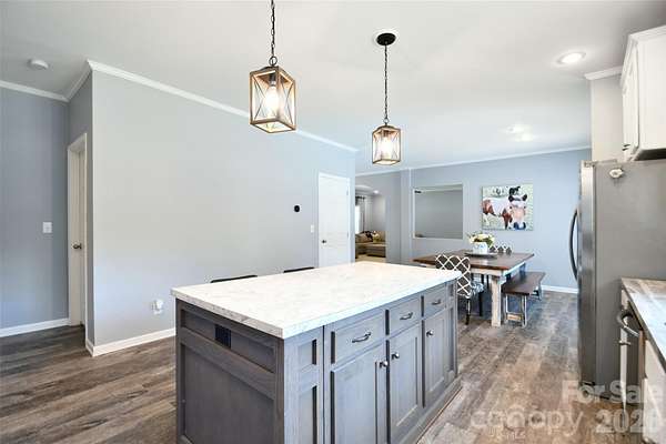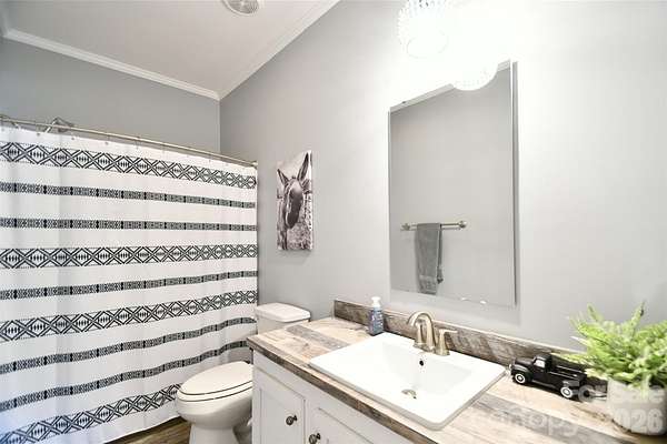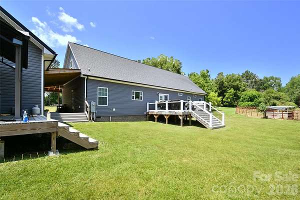 Here's your dream farmhouse retreat on nearly 6 acres, perfect for animal lovers, hobby farmers, or those needing space for a home business. Enjoy an open floor plan with 9ft ceilings, natural light, & laminate flooring. The spacious kitchen is designed for entertaining with a large island, double oven, and farmhouse sink. It flows seamlessly into the family room, which includes a gas fireplace, crown molding and built ins. Main-level primary suite has custom closet, dressing room, and spa-like bath. 2 additional bedrooms and full bath are on main floor offering comfort and convivence for family or guests. Upstairs offers 2 bedrooms, a full bath, and a bonus room. Relax on the massive front porch or spacious back deck. 3-car garage with loft storage. Horse or hobby ready barn/workshop with HVAC, tack room and kitchen. Fenced pastures with auto waterers, hay barn, run ins and equipment shed. This property offers privacy & rural charm yet convenient access to High Rock Lake & I-85