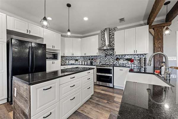 Nestled on a private, five-acre parcel, 265 Wade Rd is a beautifully remodeled country retreat that blends modern comfort with classic rural charm. The home offers 4 bedrooms, 4.5 bathrooms and a dedicated office, plenty of space for family, guests, or remote work. The heart of the home is the oversized kitchen with generous counters and a comfortable eat-in area designed for everyday living and entertaining.Two large family rooms invite cozy nights by the fireplace, while the expansive covered patio extends the living space outdoors for barbecues, family gatherings, and quiet mornings overlooking the pastureland. The land is fully fenced and cross-fenced with two pastures equipped with water and a feed shed ideal for livestock or hobby farming. A barn with electricity is ready for storage or a workshop, and dedicated RV boat storage plus three carports provide ample room for vehicles and toys.