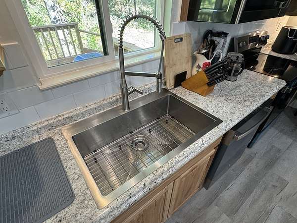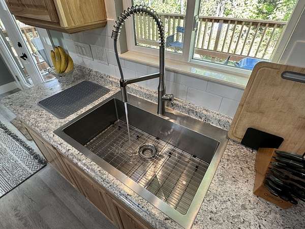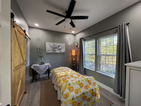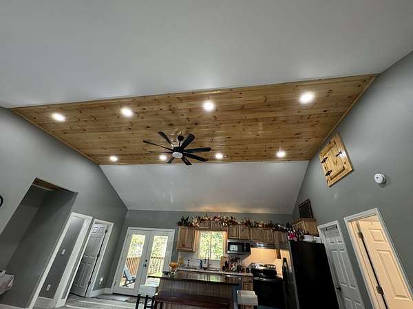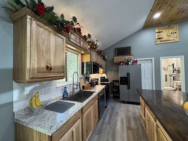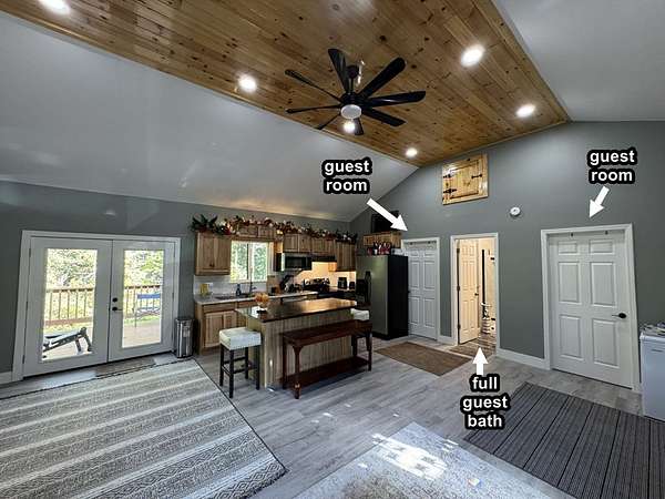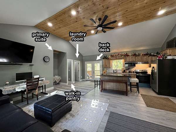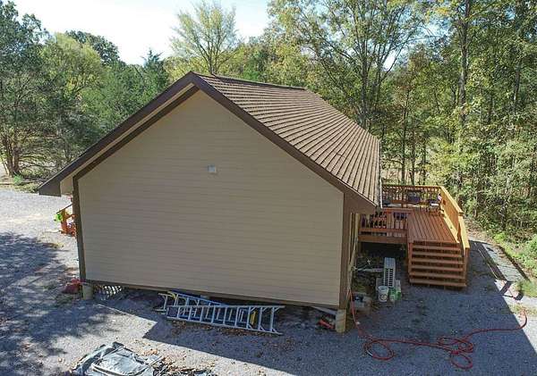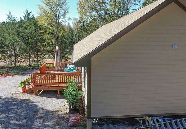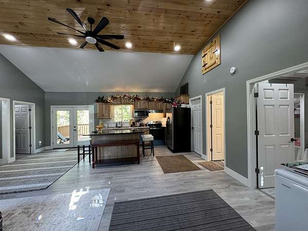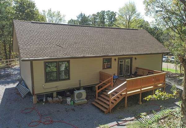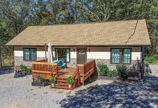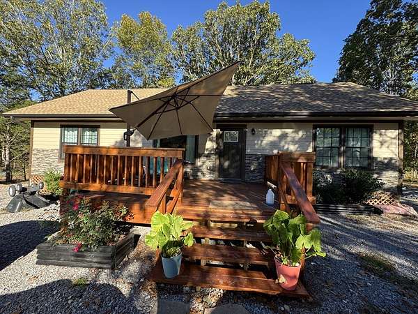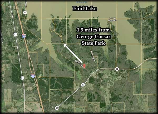 Enid Lake Investment Less than 2 Miles from the Water! Built in 2024, this thoughtfully-planned little cabin sits on just enough acreage to have a great business plan for the future. There's no HOA, & this unique lot allows for up to seven 1BR 1BA cabins to be built. Even if only 2 or 3 were built, the income potential is incredible. The home features a vaulted wood ceiling, open floor plan, stainless appliances, a custom wood-topped island, separate laundry room, a walk-in pantry, & 2 decks. The primary suite has a walk-in shower & a deep soaking tub. The opposite side of the house has a full bath with tiled walk-in shower & two guest rooms. The all-electric home is heated & cooled by multiple mini-split units, so it's easy to control the climate in each room. Whether this will be your weekend retreat, a rental, or your forever home, enjoy lake living and create some substantial long-term residual income!