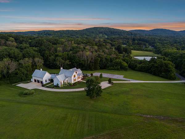 Experience refined country living just minutes from the heart of Nolensville. This stunning custom-built modern farmhouse, completed in 2018, offers over 5,352 square feet of thoughtfully designed living space, perfectly situated on nearly 45 private acres of rolling hills, pastures, and a seasonal pond.