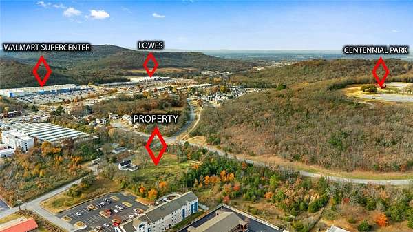 Prime 2-acre C2 development opportunity directly adjoining Centennial Mountain Bike Park, one of Fayetteville's premier outdoor tourism destinations with 228+ acres of world-class cyclo-cross and mountain biking trails. Surrounded by rapid commercial expansion, including national-brand hotels, multifamily communities, restaurants, and self-storage, making it ideal for large-scale commercial growth. With immediate proximity to I-49 and positioned in one of Fayetteville's fastest-growing corridors, this property is perfectly suited for hotel development, branded extended-stay concepts, multifamily housing, or mixed-use project capitalizing on strong year-round visitor traffic. Direct trail access creates a unique value proposition for hospitality and residential developers seeking to move to NWA' outdoor recreation economy. Property includes a historic structure ("The Old Tharp Place," circa 1844), offering optional restoration potential or integration into a creative development plan. Please reference MLS 1329059