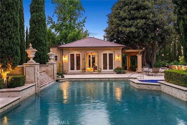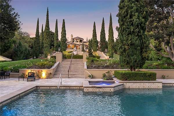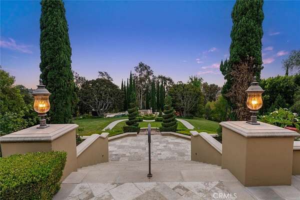 Embraced by one of the most sought-after homesites in Laguna Hills' prestigious Nellie Gail Ranch community, this rare estate is ready for your personal touch. Spanning more than four acres, the terraced and private grounds are accessed through custom gates at the end of a hilltop cul-de-sac. This sanctuary offers approximately 8,000 square feet of living space, including seven ensuite bedrooms and eight bathrooms. A generous foyer provides a grand introduction, leading to spacious and inviting rooms, two offices, a chef-inspired kitchen, a gym, and game rooms on each level. Indoor/outdoor living is seamless with numerous French doors opening to patios and gardens. High-quality craftsmanship is evident in the millwork, finishes, and fixtures. The primary suite, located on the main level, opens to a patio with a private spa and features a large bath and a walk-in closet. Outdoors, the estate boasts a pool terrace with a spa, a pool house with a bath and kitchen, a full-size lighted tennis court, expansive lawns, a pond with a waterfall, three stables, and a tack room. The equestrian-zoned property connects to Nellie Gail's scenic horse trails and includes hidden gardens, meandering pathways, and sunset views. Nellie Gail Ranch is home to a tennis club and equestrian facilities, and the community is conveniently located near The Shops at Mission Viejo, I-5, regional parks, and Laguna Beach. Outstanding schools for all grade levels serve the area. This is a unique opportunity to reimagine one of Orange County's most coveted properties.
