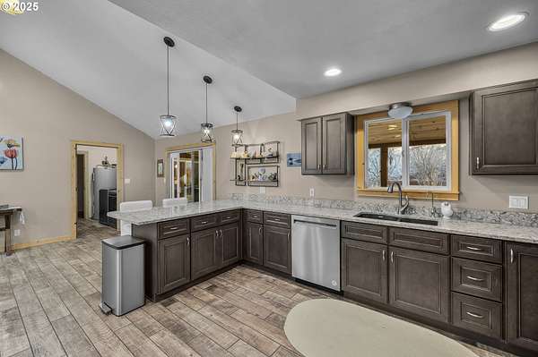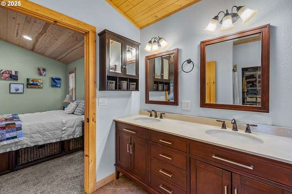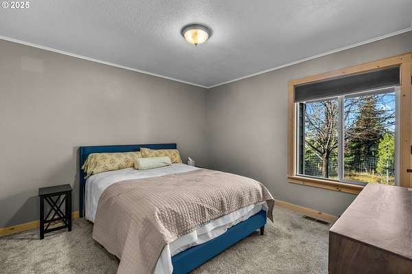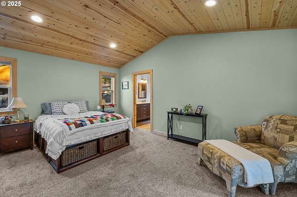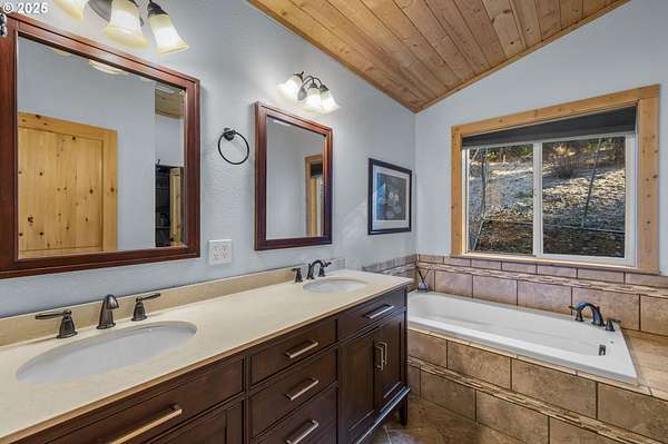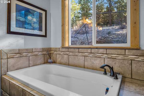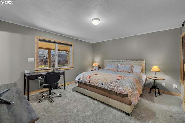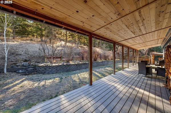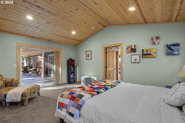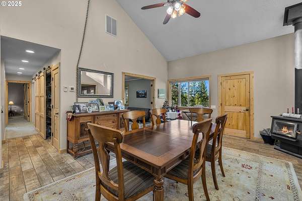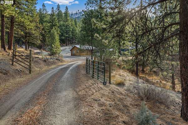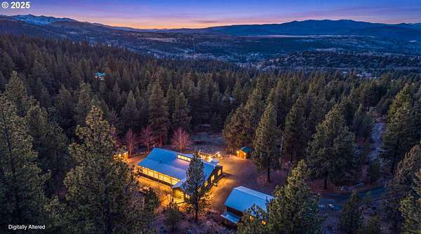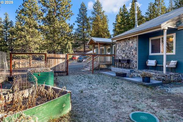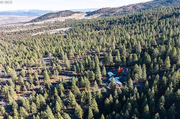 Dreaming of owning five acres nestled among the pines with direct access to public land? This beautiful property borders BLM and offers privacy, space, and comfort in a stunning 2,412 sq ft home accented with warm pine finishes throughout.The home features four bedrooms and three bathrooms, including two primary suites. The main primary suite offers a sliding glass door to the covered back deck, double vanity, soaking tub, tile shower, and walk-in closet. The second primary suite includes a shower surround and a closet with stylish bypass barn doors-ideal for guests or multigenerational living.Comfort is ensured year-round with a Blaze King woodstove and a ducted heat pump. Outside, you'll find a 1,040 sq ft detached garage/shop with concrete floor, insulation, sheetrock, 220 power, and an oil monitor stove-perfect for projects or storage. Additional storage is provided by a 12' x 10' hickory shed.The backyard is fenced for pets, with partial perimeter fencing around the property. A well, septic system, and a backup generator wired to the home provide peace of mind. A circular driveway offers easy access and ample parking. This property combines functionality, privacy, and access to the outdoors-an ideal retreat with room to live, work, and explore. This property is situated only a few minutes away from town.