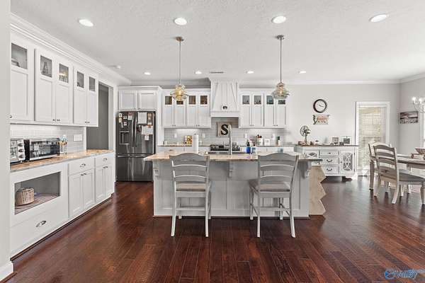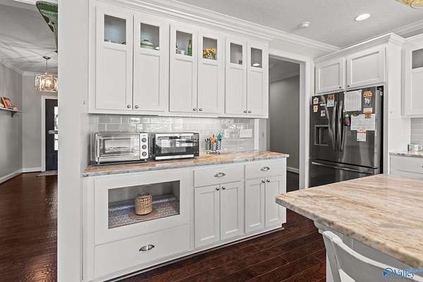 Gorgeous home in Southside with 1.9 acres and new Shop Building! Immaculate home with every attention to detail cared for! Walking distance to elementary school and high school! This home boasts 3 BR/2 BA with open floor plan. Kitchen features large island with beautiful granite countertops and black stainless appliances. Primary bedroom has his/her walk-in closets and the ensuite bath shines with step in tile shower and beautiful soaking tub. Crown molding and hand-scraped hardwoods throughout make this a real showplace. Beautifully landscaped! New shop building for all of your hobbies and toys! Hurry and see this beauty today!