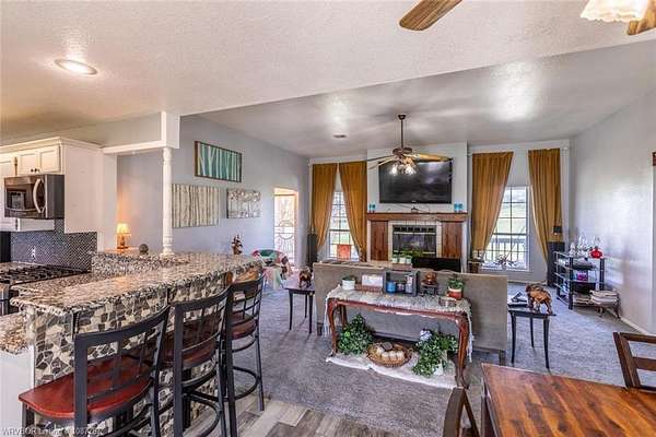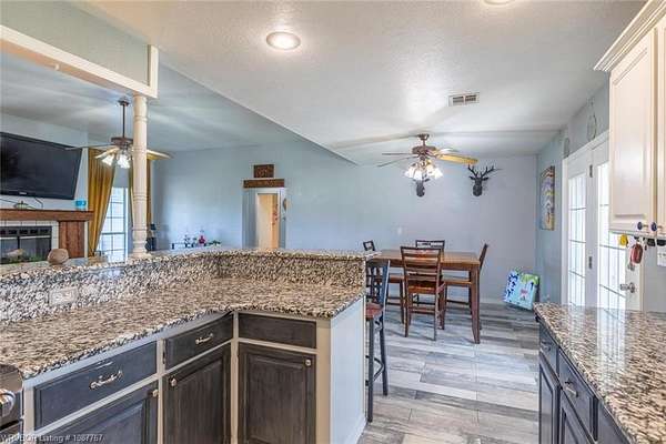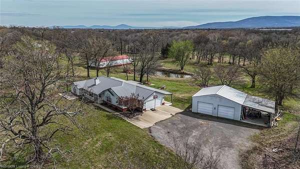 Welcome to your own private slice of country paradise at 26513 Rock Jail Rd in Bokoshe, Oklahoma! Nestled on approximately 10 acres (m/l), this beautiful 3-bedroom, 2-bath home offers the perfect blend of peaceful rural living and functional amenities for everyday life. As you arrive, you'll be greeted by a long, scenic driveway creating a warm and inviting first impression. The property is beautifully enhanced with mature trees and even a charming fig grove-perfect for those who appreciate nature, gardening, or a touch of homestead living. The home features a durable metal roof, a 2-car garage, and charming covered front and back porches-perfect for enjoying your morning coffee or relaxing in the evenings while taking in the serene surroundings. Inside, the kitchen is designed with both style and function in mind, offering granite countertops, abundant cabinet space, and plenty of room for cooking and gathering. The open layout provides a comfortable flow for family living or entertaining guests. Step outside and you'll find everything you need for country living-10 acres of usable land, a peaceful creek running along the back of the property, and a 2-bay shop ideal for equipment, hobbies, or business use. Whether you're looking for a hobby farm, space for livestock, or simply room to roam, this property has it all. Additional features include a storm shelter for added safety and peace of mind. If you've been searching for a property with acreage, privacy, and practical improvements in LeFlore County, this one checks all the boxes. Schedule your showing today and experience the beauty and freedom of country living!