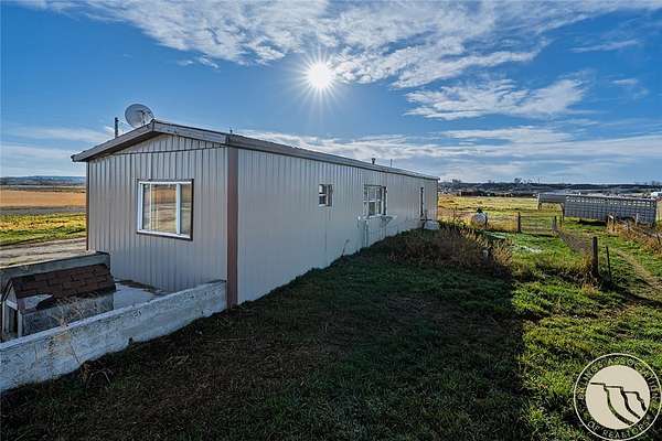 Discover the possibilities with this rare offering of just under 20 acres of fenced and irrigated farm ground, currently planted in alfalfa, with ditch rights and no restrictions, offering endless potential. Live comfortably in the existing, older 2 bed, 1 bath mobile home while you build your dream home. The home features all-metal siding and roof, plus an added exterior framed wall for increased insulation. Inside you'll find a spacious kitchen and living area plus a large mud porch for extra storage. Just around the corner from Pompey's Pillar National Monument and convenient access just 2 miles from I-94, making for an easy 35-minute commute to Billings. Rural freedom with city convenience!