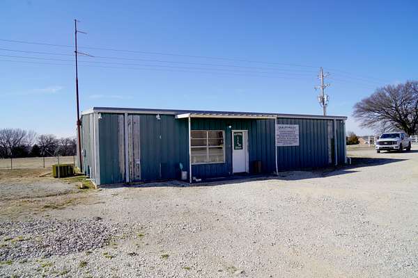 The building includes metal interior side walls, and sits on an 8-inch concrete slab. Access is provided by four 12' x 14' overhead doors, two 16' x 12' sliding barn doors, and one 24' x 12' south-facing sliding barn door. The building is equipped with three-phase electric.Additionally there is 2,000+- square foot office building (40' x 50') provides a kitchen, a three-quarter bath with washer and dryer, and two additional half baths. The office is serviced by water well, septic system and separate electric meter.