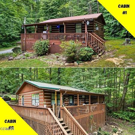TWO CABINS WITH NO RESTRICTIONS ON 3.94 ACRES!!! Amazing location if you want peace & quiet away from the tourists and traffic, but also a quick drive to Gatlinburg, Pigeon Forge, national park(s) and all the other amenities the Smokies provides. So many OPTIONS!!! 1) use one cabin as personal residence and rent out the 2nd cabin for STR/LTR income. 2) use one cabin as personal residence and have family/friends live in the 2nd cabin. 3) STR or LTR both cabins and use solely as investment properties. The 1st cabin sitting higher up the mountain is a 2BR/1BA basement rancher with garage. The 2nd cabin is a 2BR/1BA rancher with a covered deck out front. The property has 3.94 acres, with approximately 50% cleared and the other 50% wooded, and has several additional outdoor storage buildings. Please note that the cabin photos are furnished in the photos but will not be furnished at closing.