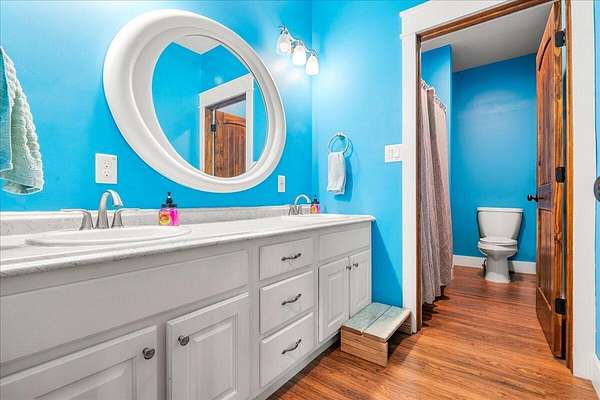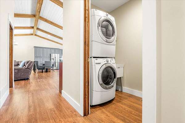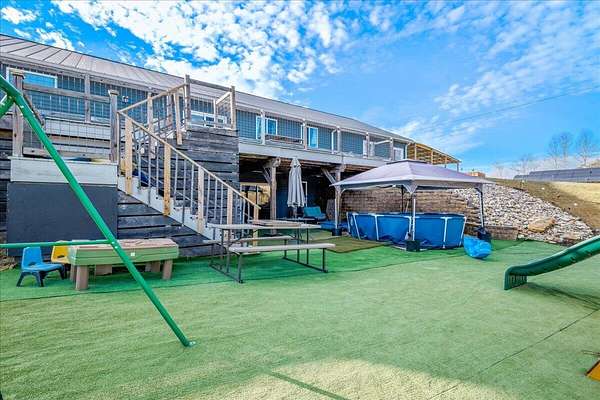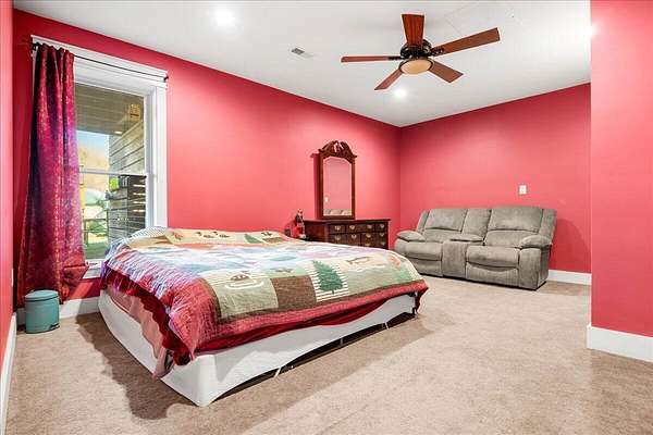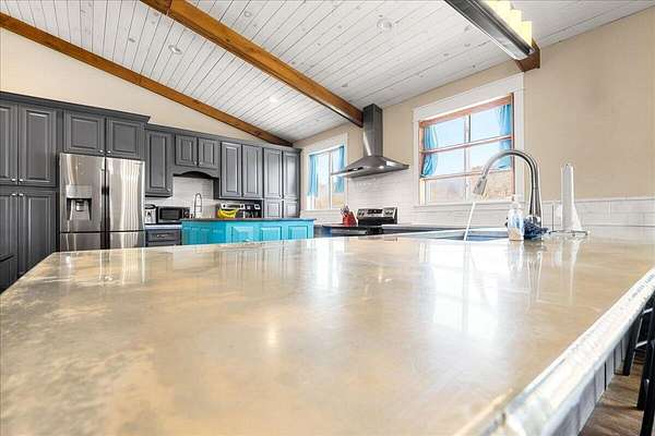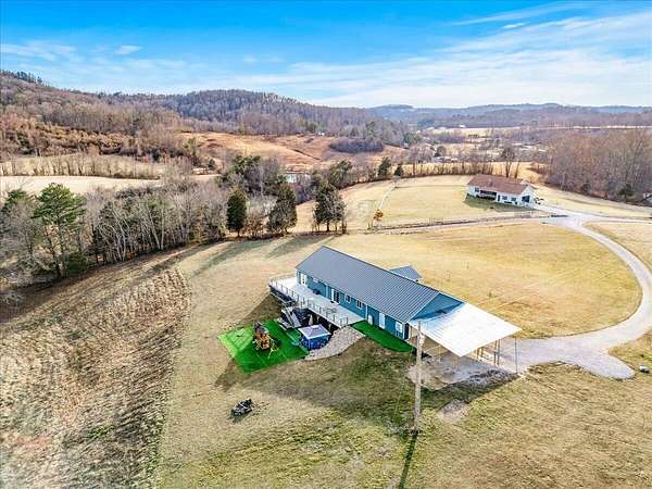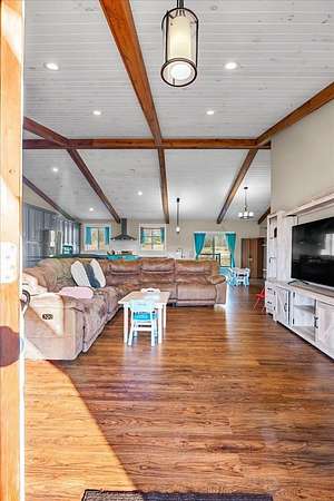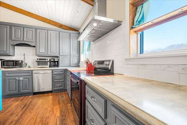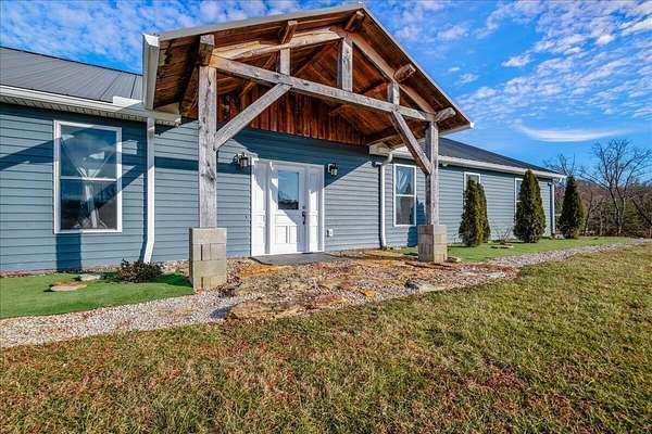 Custom-Built Luxury Home on 2.5 Private Acres - Built in 2016. Designed with both family living and entertaining in mind, this exquisite custom home blends craftsmanship, efficiency, and modern comfort in every detail. Step into the charming breathtaking open-concept great room with soaring cathedral ceilings and decorative beams. The chef's kitchen is a showstopper, featuring stainless steel appliances, and stunning concrete countertops - perfect for gatherings large or small. Spacious primary suite with tray ceilings. Spa-inspired ensuite with custom vanity, large walk-in shower (rain head + body jets), and soaking tub. Two additional bedrooms and full bath. Large, functional laundry room. Durable LVP flooring throughout the entire upper level. Fully Finished Lower Level (Built with SIPs, Not Concrete): Expansive family room. Kitchenette. Private guest living quarters. Full bathroom. Dedicated home gym area. Walk-out access to patio and outdoor firepit. Built for Comfort & Efficiency: Structural Insulated Panels (SIPs) construction. Spray foam insulation. Geothermal HVAC system. Grid-tied solar array with battery backup. Standing seam metal roof & steel siding for low-maintenance durability. Exceptionally low utility costs. Exterior Features: Private 2.5-acre lot with scenic views. Wrap-around deck perfect for entertaining. Patio with built-in fire pit. Mudroom with custom built-ins. Oversized 3-car garage with additional full bathroom. This home offers the perfect blend of luxury, sustainability, and thoughtful design - all in a peaceful, private setting.
