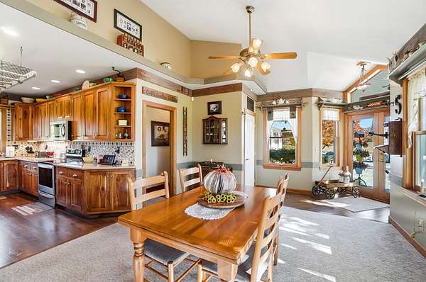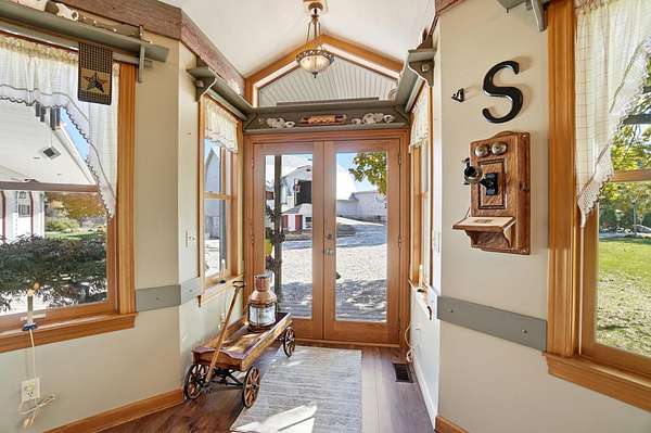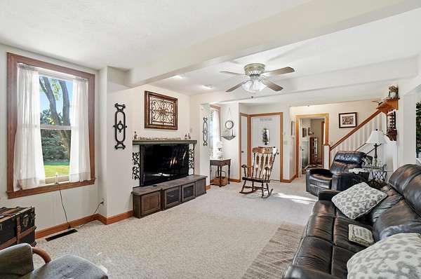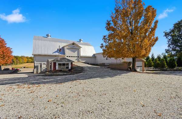 Imagine a place where your dreams and family adventures come alive - a beautifully renovated four-bedroom, three-bath farmhouse just north of New Carlisle. This rural property on 13.45 acres boasts an updated bank barn that has been adapted for modern usage, with 7 overhead doors, 5500 sq.ft., separate 200 amp service, and ready to transform into whatever you envision. Host unforgettable gatherings in a party barn, nurture animals, store equipment, launch a farm market, showcase a car collection, or start a small engine repair business. The home radiates warmth and care, lovingly maintained since the 1980s. The kitchen features gorgeous, custom cherry kitchen cabinets and solid surface countertops, inviting you to create and share meals in a space that flows seamlessly into the dining and living areas. Downstairs a cozy bedroom awaits, while upstairs, three more bedrooms and a luxurious bathroom with a soaking tub offer relaxation. The three-and-a-half-car attached garage is more than just parking - it's a heated, insulated space and has hosted joyful celebrations for years. Practical touches abound, like a bathroom and laundry room conveniently located by the back door, perfect for cleaning up after barn adventures. Much attention to detail with underground electric (in conduit) to the landscaping and outbuildings. Charming wraparound porch and mature trees provide shade in the summer. With a new roof installed in 2019, this home is ready for the future. Enjoy country living with easy access to Springfield, Dayton, and Troy.