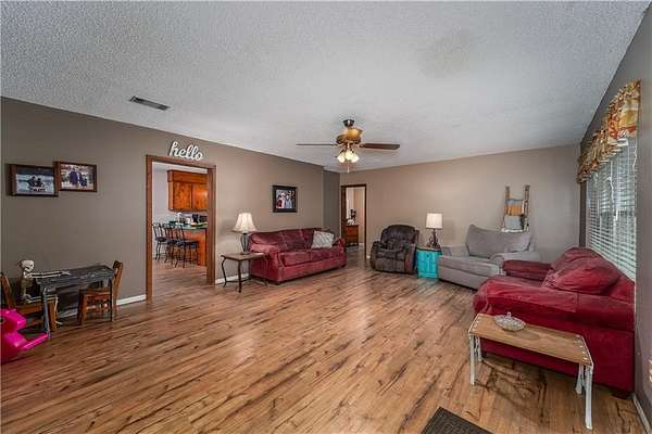 The home features four bedrooms and two full baths, including a versatile area that can serve as a mother-in-law suite, guest quarters, or additional living space. The layout provides a comfortable flow with generous gathering areas and quiet spots for everyone.
