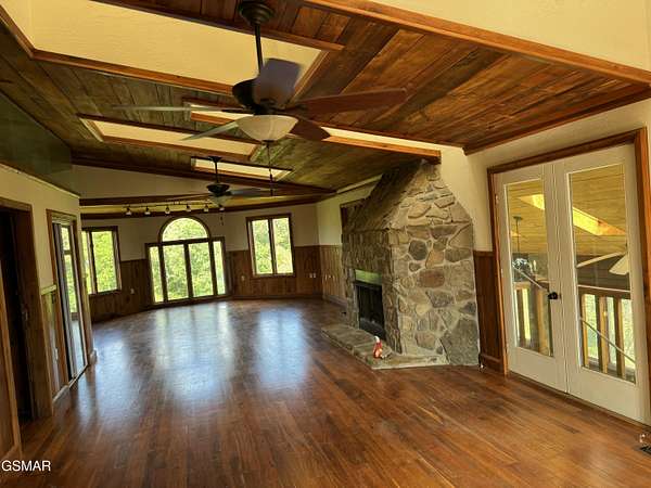 Peaceful Waterfront Country Estate on 17 Acres and also located on Boyds Creek - 3BR/3BA + 2 Half Baths | 4200 Sq Ft Discover refined country living in this spacious 3-bedroom, 3-bath home (plus 2 half baths) nestled on 16.5 to 17.5 private acres in the desirable Boyds Creek area of Sevier County. With over 4,200 sq ft of finished living space and a fully finished walkout basement, this stately home offers room to spread out and relax-indoors and out. Crafted with timeless masonry and stone, the home exudes warmth and elegance with rich wood floors, cathedral ceilings, skylights, and three cozy fireplaces. The gourmet kitchen includes a built-in dishwasher, electric range, and continuous clean oven, all accented by charming tile countertops. A large master suite features a walk-in closet and luxurious whirlpool tub. Entertain with ease in the spacious recreation room or step outside to enjoy the expansive deck, level lot, and scenic views. Additional highlights include a 3-car attached garage, outbuilding, outside storage, and mature trees offering privacy and natural beauty. The finished basement includes a walkout and private entrance, ideal for multi-generational living or conversion into separate guest quarters. Modern comforts such as central electric HVAC, ceiling fans, and multiple water/sewer utilities make for effortless living. This would also be a great potential for income as a rental unit to bring in extra income or help pay the monthly bills. Whether you're looking for a quiet retreat, family home, or a unique country estate with room to grow, this one-of-a-kind property offers it all-just minutes from shopping, schools, and the convenience of nearby Sevierville and Seymour. Other possible uses are mini storages, campground, subdivide for housing, or mixed usage. Sign on Property.