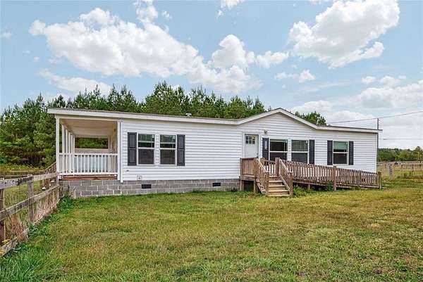 Welcome to a serene retreat in the heart of Tallapoosa! This charming modular home spans a spacious 1,312 square feet and is perfectly nestled on 5 acres of beautiful, wooded land. Enjoy the tranquility of rural living with the added bonus of access to the Tallapoosa River in your backyard . The home boasts a breezy open floorplan, perfect for seamless entertaining and relaxing. With three inviting bedrooms and two well-appointed bathrooms, including a master suite complete with a luxurious double vanity and a generously sized shower, comfort is at your fingertips. Step outside to find a handy shed nestled in the backyard, ideal for storage or hobbies, set against a partially fenced yard that adds privacy without sacrificing the natural beauty surrounding you. Experience peaceful country living today!