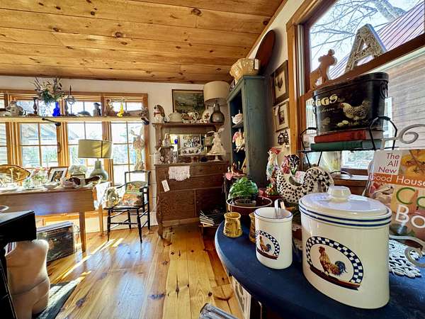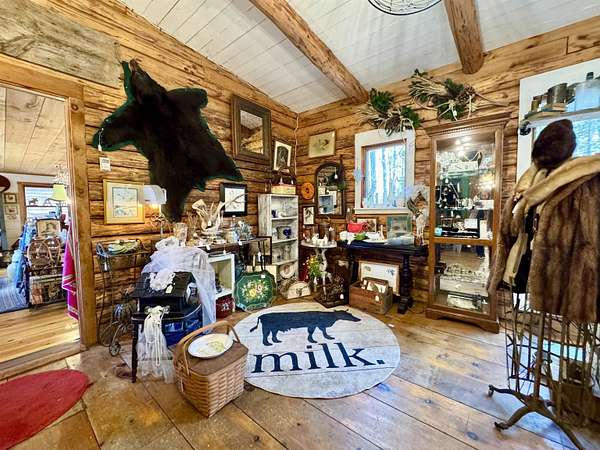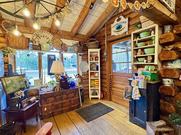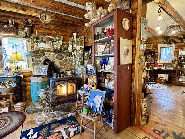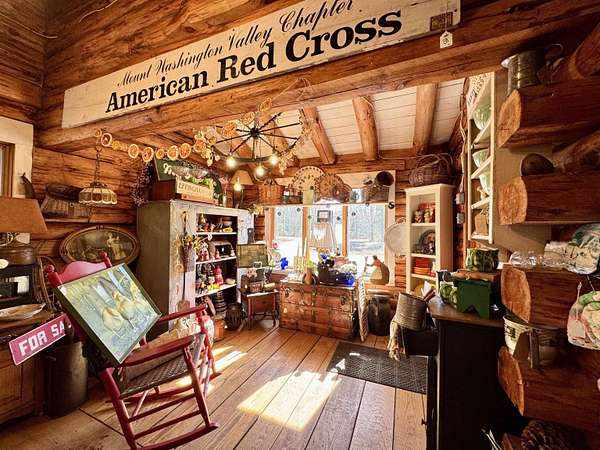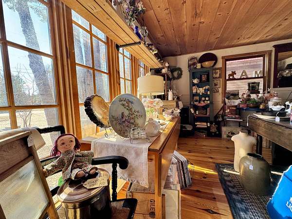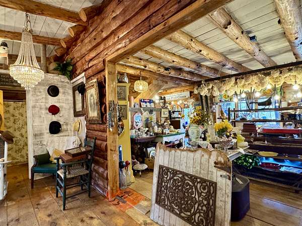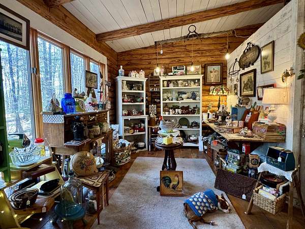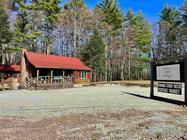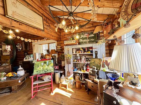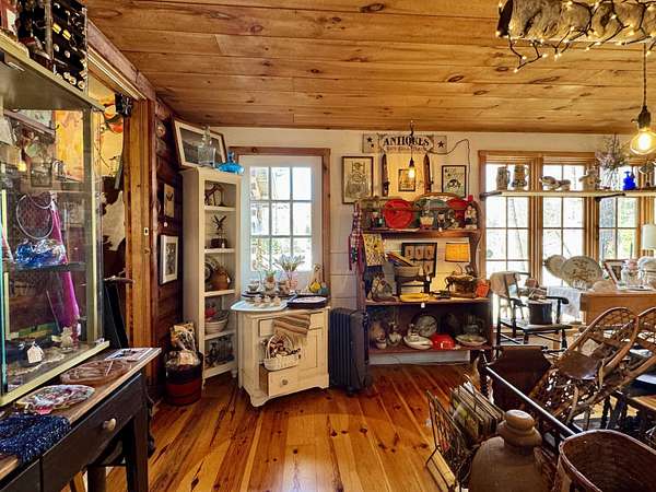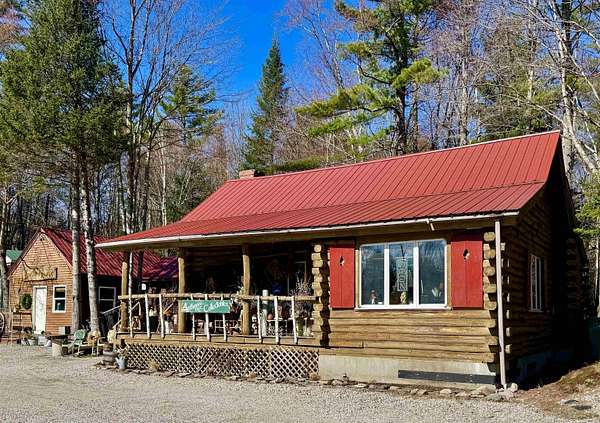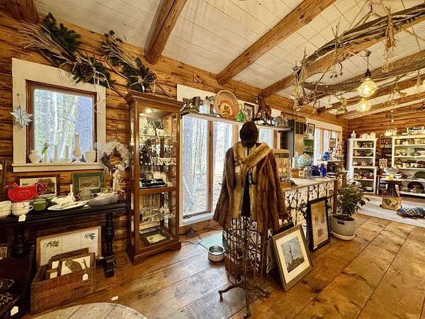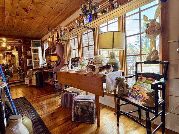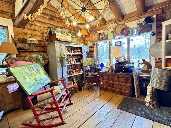 LOG HOME & BUSINESS OPPORTUNITY. Sweet Log cabin with its recent facelift is ready for your venture with loveable rustic charm and excellent highway exposure. Cleaned up and being operated as a year-round store for antiques & collectibles, the interior space has been transformed into a warm and welcoming experience. Step into this established year round business with plenty opportunity for expansion OR, launch your own ideas in this easy access location. Midway between the Lakes and Mountain Regions of NH Rt 16 corridor has a high traffic count and comes with 600 ' road frontage and two circular drives for easy parking and posturing. Enhanced by its large commercial signage to introduce your ideas to the local community and vacation traffic. There is a heated detached workshop with an attic plus additional showrooms and storage space in 2 trailers. The home’s inviting farmers’ porch is a delight and welcomes you inside to beautiful beams, cathedral ceiling and a newly open floorplan that meanders into multiple rooms. The plumbing for the former kitchen, when this cabin was used as a home/business, has been capped off during present ownership and room partitions removed, other than its full bathroom which remains. Many windows capture the sunlight and the serene backyard views. A woodsy 6 acres includes a stream, meadows and wetlands, creating a natural and scenic habitat for wildlife. Operating as a co-op style store there are currently 6 vendors contributing to income, (many who would love to stay on) in this turn-key business opportunity making it easy and profitable to step into an existing business or hobby. Nestled into the gateway of the Mt Washington Valley, this authentic and charming log home is commercially zoned and welcomes your own creative ideas as a great space for an art or yoga studio, professional office, fishing and tackle shop or other such business ideas. Located 2.4 miles to Chocorua Lake and 1 mile to the Piper Trail to Mt Chocorua.