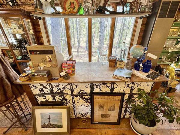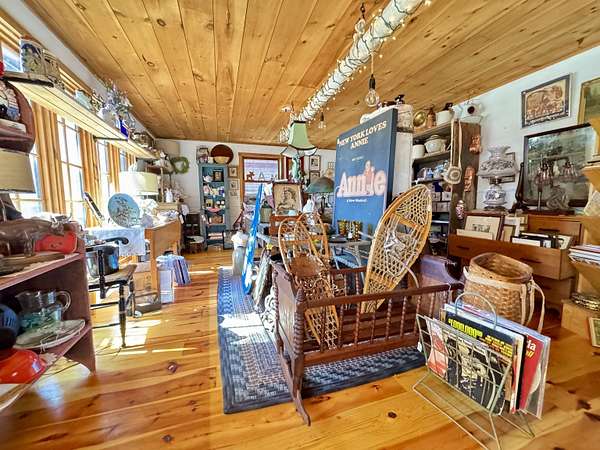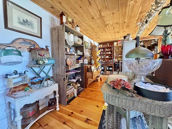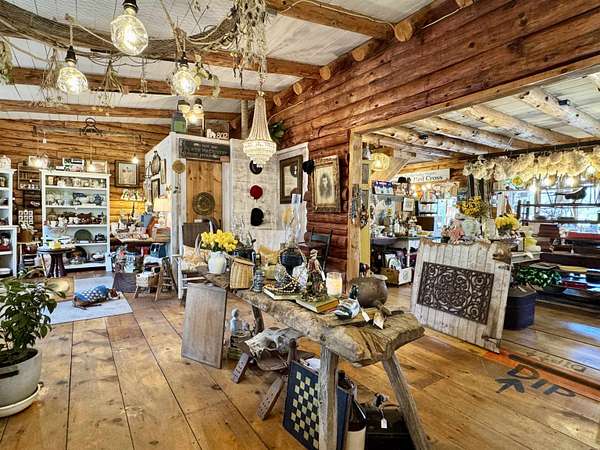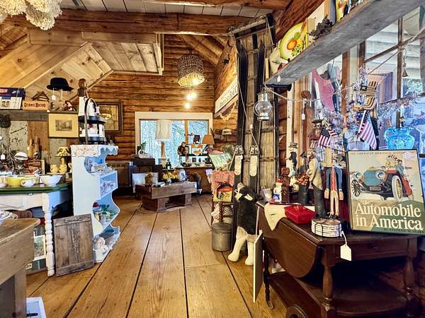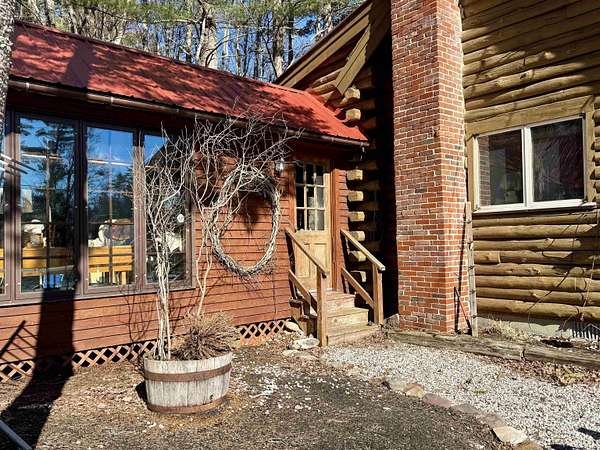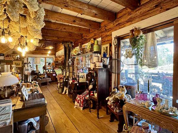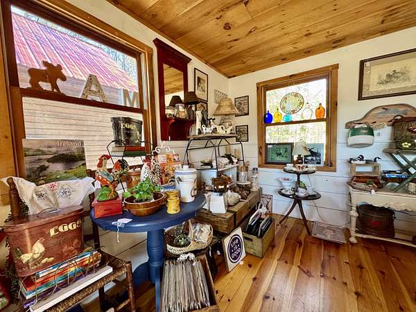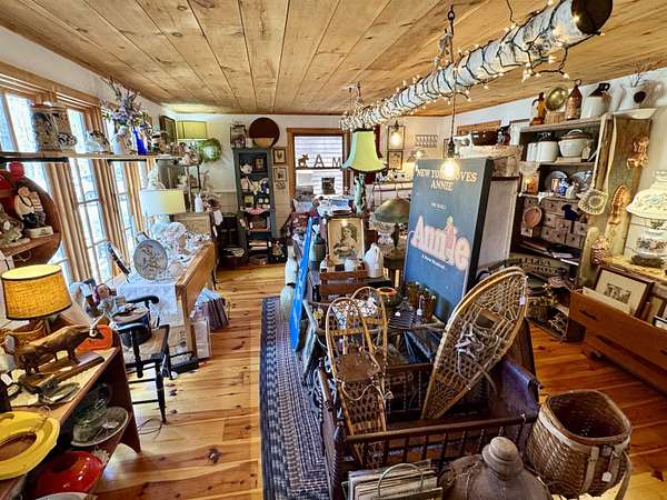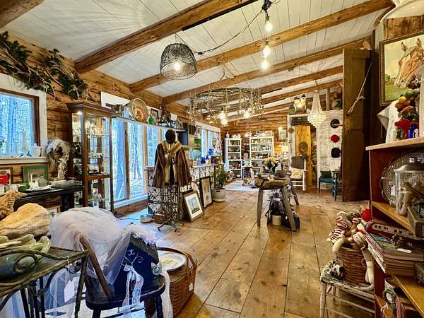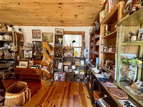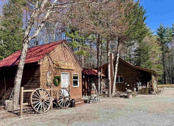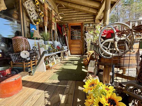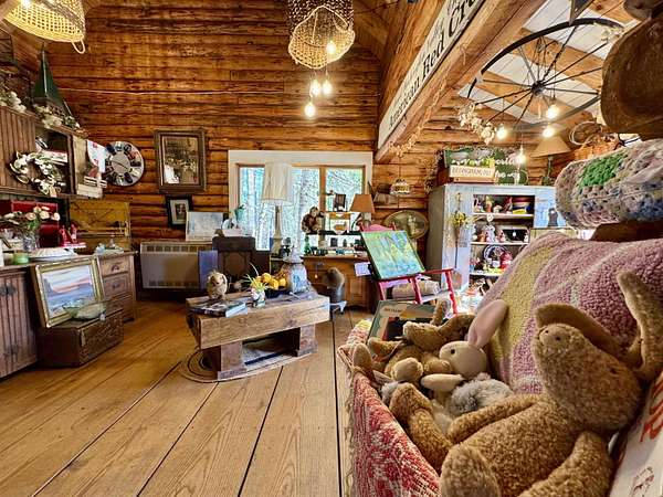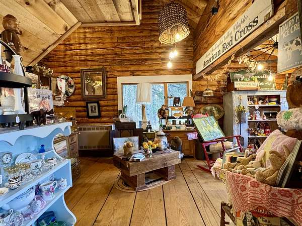LOG HOME & BUSINESS OPPORTUNITY. Sweet Log cabin with its recent facelift is ready for your venture with loveable rustic charm and excellent highway exposure. Cleaned up and being operated as a year-round store for antiques & collectibles, the interior space has been transformed into a warm and welcoming experience. Step into this established year round business with plenty opportunity for expansion OR, launch your own ideas in this easy access location. Midway between the Lakes and Mountain Regions of NH Rt 16 corridor has a high traffic count and comes with 600 ' road frontage and two circular drives for easy parking and posturing. Enhanced by its large commercial signage to introduce your ideas to the local community and vacation traffic. There is a heated detached workshop with an attic plus additional showrooms and storage space in 2 trailers. The home’s inviting farmers’ porch is a delight and welcomes you inside to beautiful beams, cathedral ceiling and a newly open floorplan that meanders into multiple rooms. The plumbing for the former kitchen, when this cabin was used as a home/business, has been capped off during present ownership and room partitions removed, other than its full bathroom which remains. Many windows capture the sunlight and the serene backyard views. A woodsy 6 acres includes a stream, meadows and wetlands, creating a natural and scenic habitat for wildlife. Operating as a co-op style store there are currently 6 vendors contributing to income, (many who would love to stay on) in this turn-key business opportunity making it easy and profitable to step into an existing business or hobby. Nestled into the gateway of the Mt Washington Valley, this authentic and charming log home is commercially zoned and welcomes your own creative ideas as a great space for an art or yoga studio, professional office, fishing and tackle shop or other such business ideas. Located 2.4 miles to Chocorua Lake and 1 mile to the Piper Trail to Mt Chocorua.
