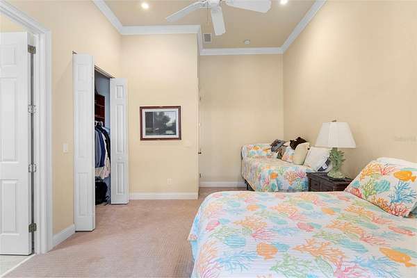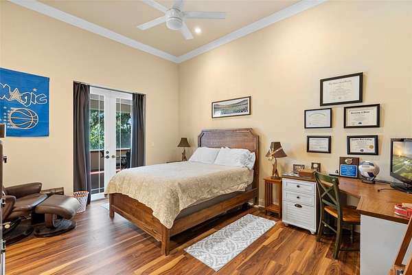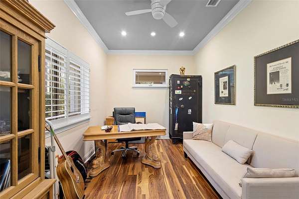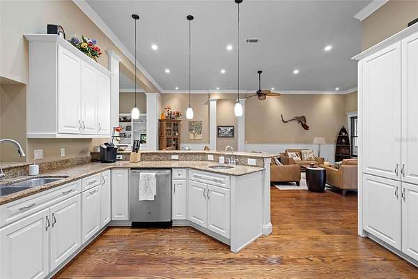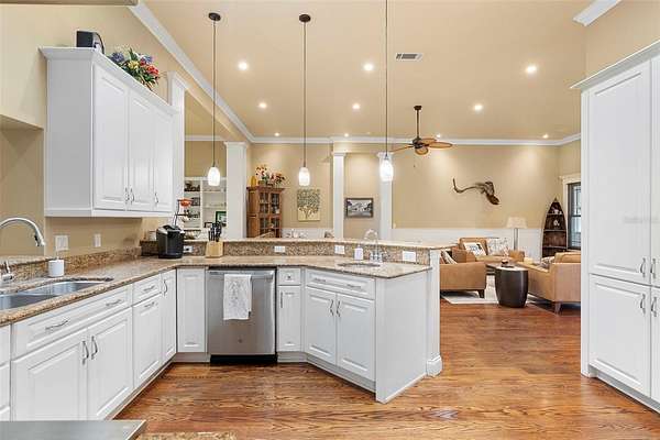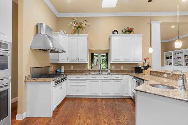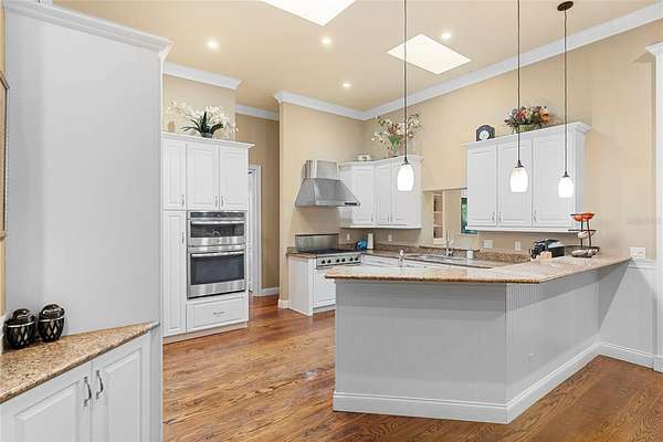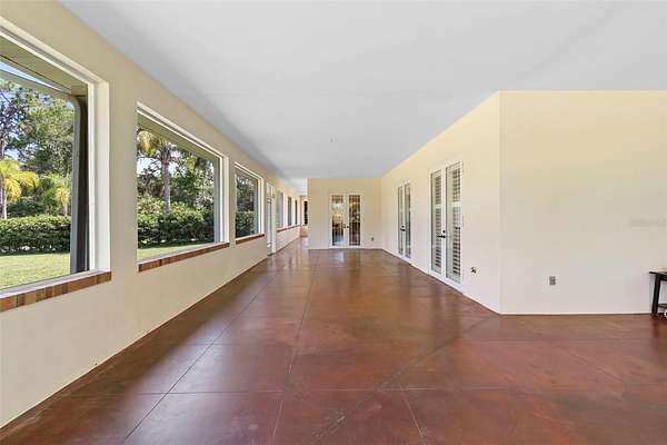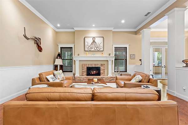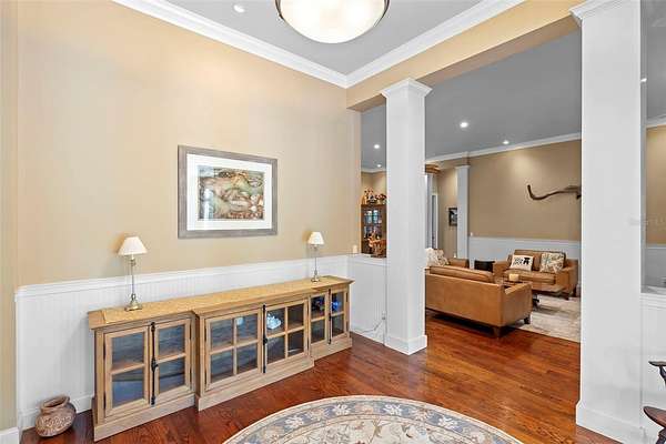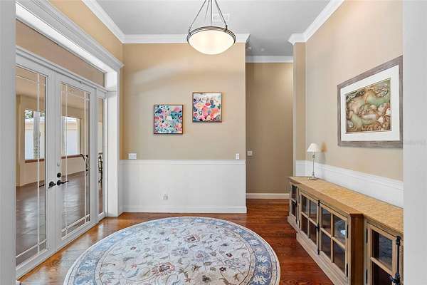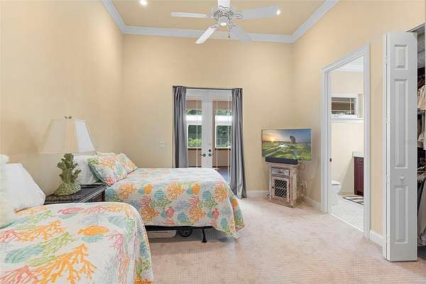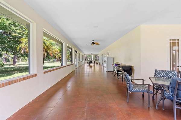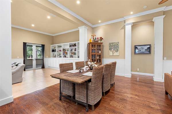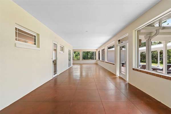 Welcome to 2659 Pioneer Trail, one of the most unique luxury properties in New Smyrna Beach. This exceptional estate blends timeless elegance with modern luxury and classic Southern charm. Perched on 2.66 acres of meticulously manicured and fully fenced land, the property offers ample space for RVs, boats, animals, or anything your lifestyle demands. A custom-built, nearly 4,000-square-foot wraparound porch provides stunning views of mature pines and a tranquil pond, enhancing the home's sense of privacy and seclusion. Inside, the home offers 3,039 square feet of refined living space, thoughtfully designed to blur the line between indoor and outdoor living. Nine sets of French doors seamlessly connect the interior to the expansive wraparound porch, allowing abundant natural light to pour into the home and creating an effortless flow for entertaining and everyday living. As you step through the front door, you are met with soaring 12-foot ceilings, full crown moulding, classic hardwood flooring, and an expansive family room anchored by a stately wood-burning fireplace. The chef's kitchen features granite countertops, a gas range, deep sink, prep sink, and generous workspace- perfect for entertaining or everyday living. The primary suite is a true sanctuary, complete with a private office or library, a spa-inspired bathroom with freestanding tub and dual vanities, and a spacious walk-in closet. Two additional bedrooms serve as private retreats, each offering en-suite bathrooms and French doors opening directly to the wraparound porch. A brick-lined courtyard connects the home to an oversized two-car garage via breezeway, while a secondary gated entrance provides easy access for trailers, large deliveries, or additional parking. The main entrance is hidden behind an automatic gate, leading down a hand-laid brick paver driveway bordered by manicured hedges and opening to a grand roundabout with a stately flagpole- an arrival that sets the tone for the elegance within. The property has been meticulously maintained and thoughtfully updated, including a whole-house Generac generator, updated HVAC system (2024), two new hot water heaters (2024), fresh interior and exterior paint, a gutter guard system, and more. Offering unmatched character, functionality, and a rare harmony with nature, this estate is more than just a home- it's a lifestyle.