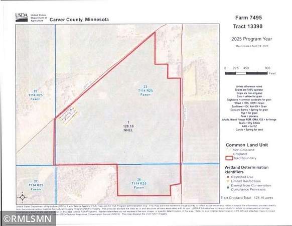 Virtual Tour is drone videos of this 128 Acres (more or less) of highly productive farmland in Faxon Township in Sibley County between Belle Plaine and Green Isle. 88.8 Productivity Index, Available for 2026 Planting season. Good View of property from the back of cemetery off 200th street. Fast Close possible. The current renter would continue to lease if acceptable terms can be worked out with a new buyer. Property contains 2 PID numbers.