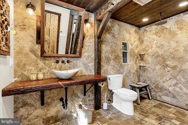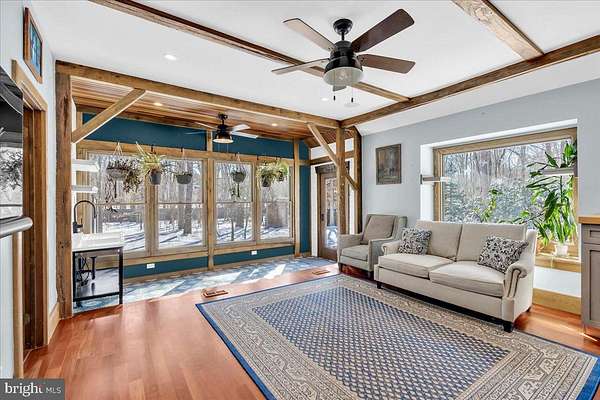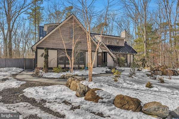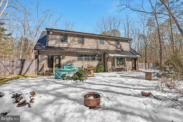 3/4 bedroom, 2.5 bath English-styled cottage nestled on over 3+ acres of wooded privacy in Medford Township! With its cedar shake siding and brick accents, this is truly a one-of-a-kind home. Pull up to the circular driveway and enter through the sun-filled two-story foyer, featuring hardwood floors throughout, with heated floors in the sunroom and primary bath. Enjoy peace of mind with a new metal roof (2018) and a stunning David Ramsay kitchen complete with commercial-grade appliances, a farmhouse sink, custom-made snack bar, and a soapstone island. You'll love the abundance of Andersen windows, allowing natural light to pour in. The living room offers a beautiful brick fireplace, plus a family room with charming beam ceilings. Upstairs, you'll find three spacious bedrooms and a former fourth bedroom that has been transformed into a custom dressing room/closet. The luxury primary suite feels like a Vail, Colorado retreat, featuring a spa-like bath and vaulted beam ceilings. That's not all, the oversized garage, currently used as a music studio, offers incredible flexibility and can easily be converted back to a garage with the door intact. The garage connects to a full basement, providing fantastic space for storage, a wine cellar, or whatever suits your needs. Additional features include a custom fence surrounding the property, generator, gazebo with hot tub, tankless hot water system, new HVAC (2016), and over $100,000 in landscaping. This home is a happy space giving nature a run for the money!