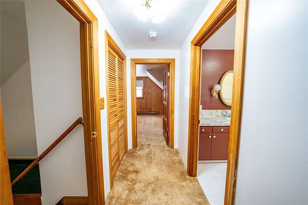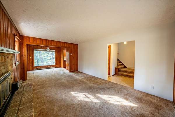 Nestled in the country on 4.77 acres, this lovely 3-bedroom, 2-bath home offers the perfect blend of privacy and comfort. The comfortable living room is designed to be a central gathering space, featuring a fireplace that provides warmth and ambiance with ample room for entertaining. Beautiful windows throughout let the sunshine in, while showcasing the lovely, serene setting. Galley kitchen has beautiful cabinetry, and plenty of counter space for preparing meals. There is one bedroom and bath on the main level, with two additional bedrooms upstairs that share a 3/4 bath with walk-in shower. Built-ins throughout this home add charm, character and convenience. Basement provides room for all your special projects whether it be woodworking, quilting, with a room that could be used as a non-conforming bedroom. Step outside on the back patio that leads to a deck, surround by serene forest views - the perfect spot for morning coffee or evening sunsets. Located in a park like setting, this property offers a unique opportunity to embrace the tranquility of Montana living. With room to roam, garden, or simply unwind, this property offers a rare opportunity to own your own private retreat. A shed provides practical storage space, while views of the woods provide a sense of seclusion and connection with nature. Poured slab provides the foundation for a future garage/shop. Located in a desirable area not far from town, this unique property is sure to impress. Call for your appointment to see this lovely property today!