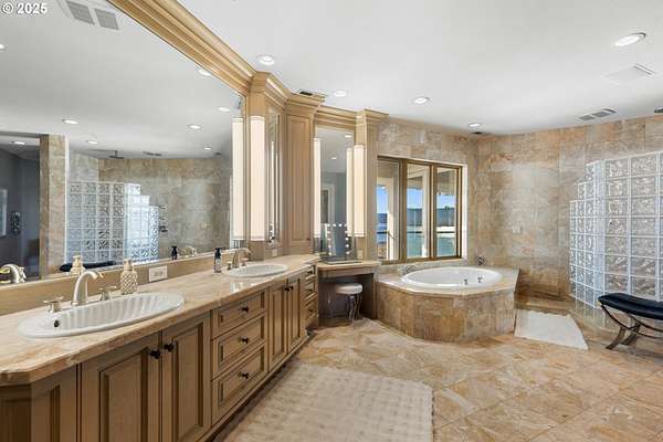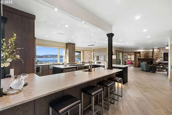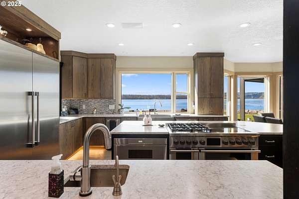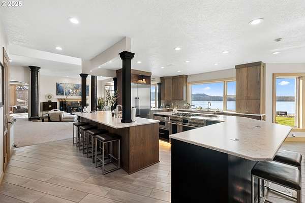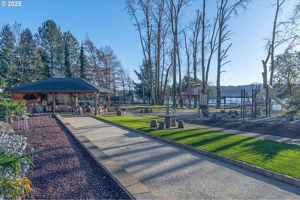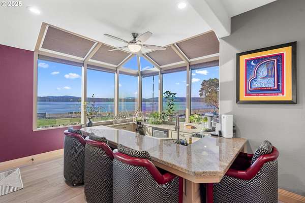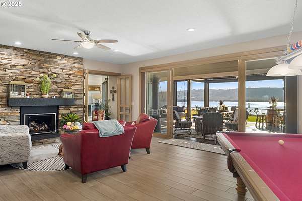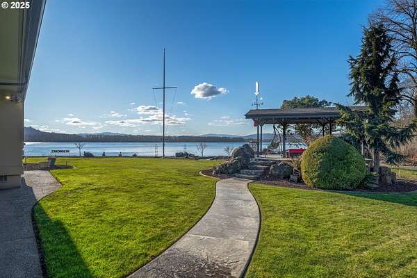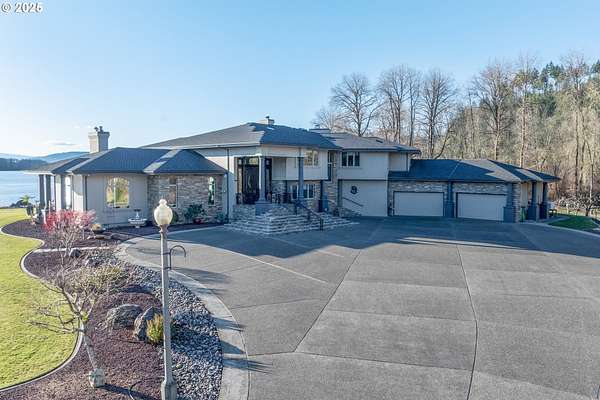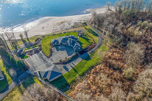 This stunning waterfront estate is a rare opportunity, offering 16.75 acres of ultimate privacy, surrounded by water on three sides. With over 1,000 feet of sandy Columbia River beach, this property delivers breathtaking views from nearly every room. A charming boardwalk leads to your private 80-foot boat dock, perfect for all your water adventures. The completely remodeled open kitchen is a chef's paradise, featuring quartz countertops, three ovens, and every detail is designed for entertaining or everyday luxury. Outside, a riverfront gazebo is a dream venue for hosting with its full kitchen and the option to enclose. Gas fire pit, playground, bocci ball and more. The primary suite is a serene retreat you'll never want to leave, designed with ultimate comfort in mind. And for car enthusiasts, the estate boasts garage parking for at least 10 cars, plus space for an RV. This is more than a home-it's an extraordinary lifestyle.