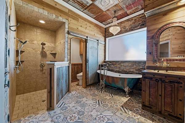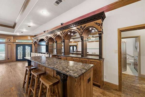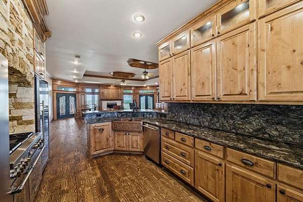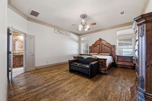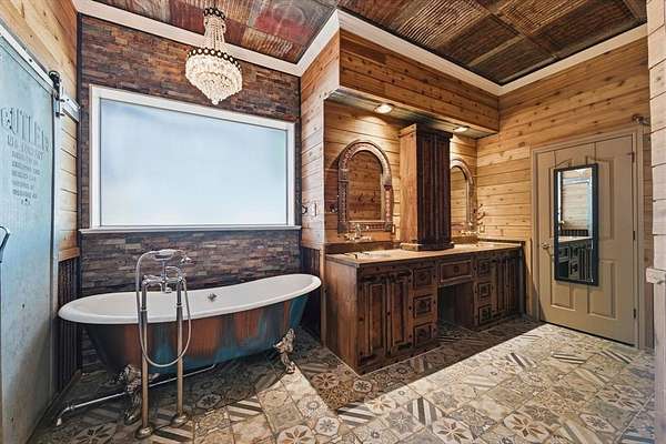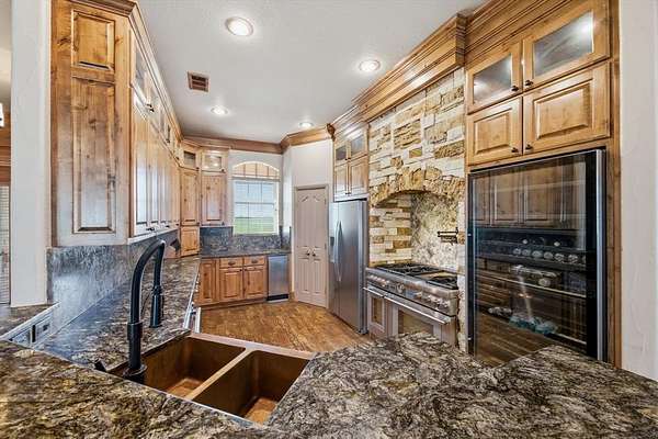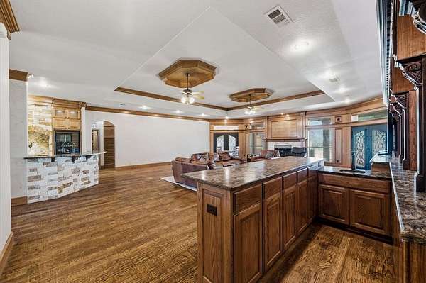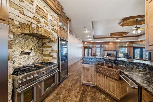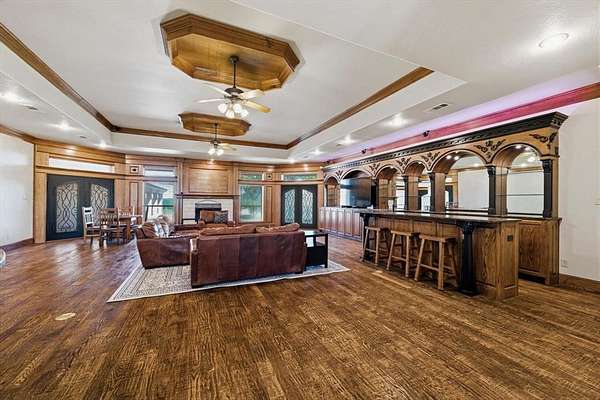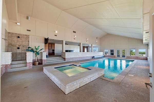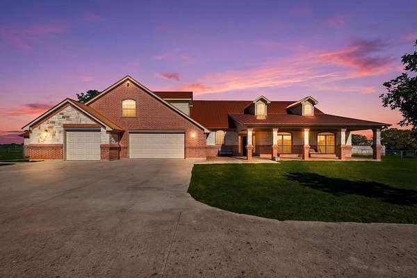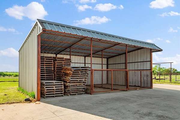 29.87 rolling acres with a hay field ag-exemption, cross fencing, and working pens - accessed through a private gated entrance. The commercial and entertaining infrastructure here is vast with an office, almost 5,000sqft of enclosed shop space, pool house, storm shelter, and bomb shelter. The main warehouse measures 90x51ft and houses the 1,513sqft climate-controlled office with a full bathroom, ready for a home-based business. It includes a 40x51 workshop with pallet racking as well as the 20x51 drive-through RV storage with full hookups. The property is easily accessible by 18-wheelers and stock trailers with room to pull through. A separate spray foamed 40x40 horse barn is climate-controlled and includes a 20x40 lean-to for farm implements. The 3,552sqft main residence features a 3-car garage, dedicated home office, hand-scraped hardwood floors, intricate craftsmanship, and an immense living room with wet bar. The kitchen boasts a Thermador 6-burner gas range with griddle and double ovens, pot filler, copper farmhouse sink, wine fridge, and walk-in pantry. The split primary suite has rustic accents and a beautiful freestanding claw foot tub. Don't miss the dog wash in the laundry room. Outside, reveals why this home was built to entertain. More than 3,000sqft of porch and patio surrounds the home. The back patio includes an outdoor fireplace and cowboy BBQ fire pit. The 2,356sqft pool house holds the pool and spa, along with game room and full bathroom with built-in lockers. Buried 20ft under the 12x25 shop, you’ll find the life of the party – the bomb shelter. Offering over 500sqft of protected space, this bunker is outfitted with a kitchenette, full bathroom, sleeping space for six, 14kw backup generator, and ventilation system. A whole home 40kw backup generator and integrated solar array will convey to the new owners. Three 500-gallon propane tanks supply the generators, fireplace, and spa. Too much to list, you’ll just have to see it for yourself.