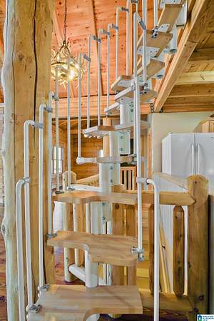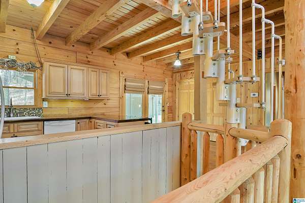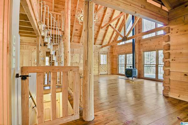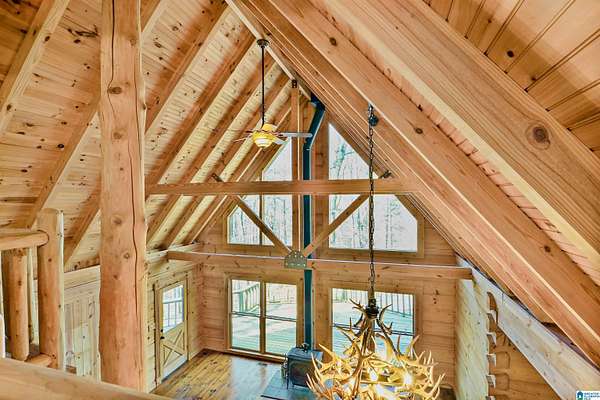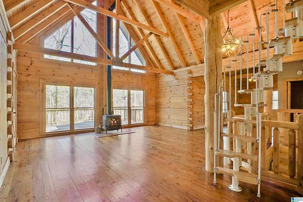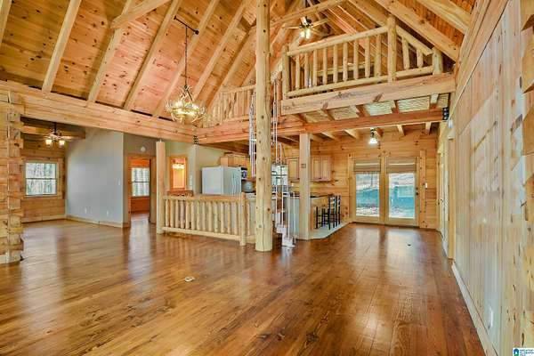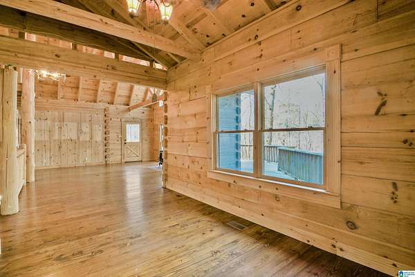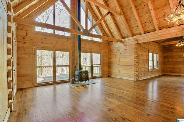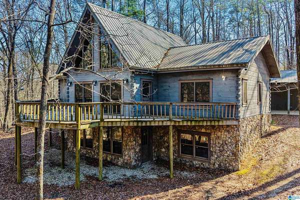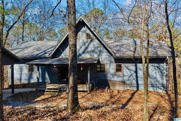 Come see this beautiful log cabin across the street from Logan Martin Lake. Sitting on a hill among the trees, this treasure can be your perfect getaway or even an AirBNB. It features 2 bedrooms, 2 baths, and an office on the main level, plus a loft room upstairs that looks out on the vaulted windows of this open floorplan, and a 1200 sqft walk-out basement. Outside you have a large front patio, covered back porch, covered carport, and attached workshop. With a total of 2.88 acres over all 3 lots, this home gives you the seclusion and space you desire, with room grow if desired...all while being walking distance to the lake. It truly is a must see.