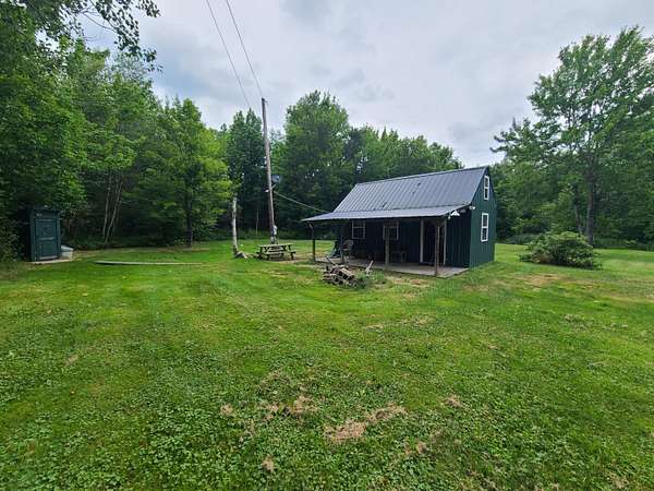 Come look at this camp or tiny house option on 1 acre. The camp has electric and drilled well. There is an old septic system on site not being used. Outhouse for your current needs. Update the outdoor shower. Basin sink inside with electric water heater. Set up with small kitchen arrangements. Loft over head for storage as well. All metal for low Maintenace option with a cute little porch to enjoy the fire pit in the evenings. You can easily add on if you need something bigger. The camper stays with property... could provide more lodging. There are 2 pear trees on this property and apple trees as well. On a year-round road for access. Enjoy all the lakes nearby along with great hunting opportunities. If you are looking for peace and quiet, you just found it. Reach out to Stephanie Cowden with First Choice Real Estate before this great deal is gone! Video available!