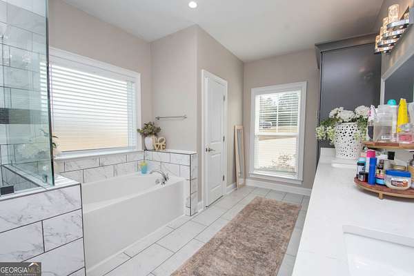 - Beamed Ceilings, Double Vanity, High Ceilings, In-Law Floorplan, Master On Main Level, Roommate Plan, Separate Shower, Soaking Tub, Split Bedroom Plan, Tile Bath, Tray Ceiling(s), Vaulted Ceiling(s), Walk-In Closet(s)