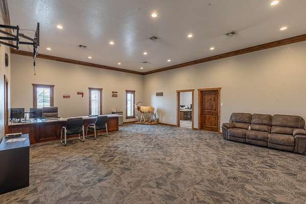 Est $23,049/moPRIME COMMERCIAL LOCATION! 7.71 acres with HUGE SHOP right off HWY 385 S on Main Street. Lots to offer including: 26,250 total sq. ft. of office/shop space, 9,000 sq. ft. of heated/cooled space.. 7 total offices-6 smaller offices each with a mini split, 1- 1,000 sq. ft. office, 3-ton ac unit, 6 total bathrooms, a kitchenette (all appliances will stay), all granite countertops throughout, and surveillance inside & out, call today!